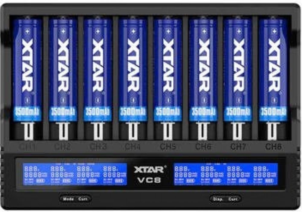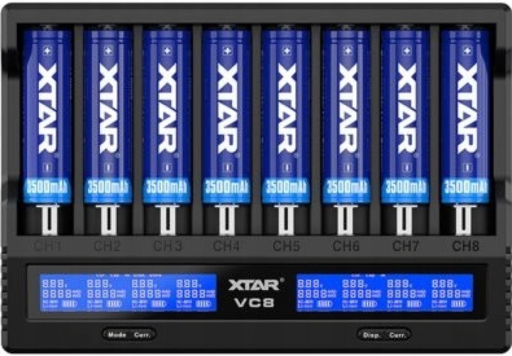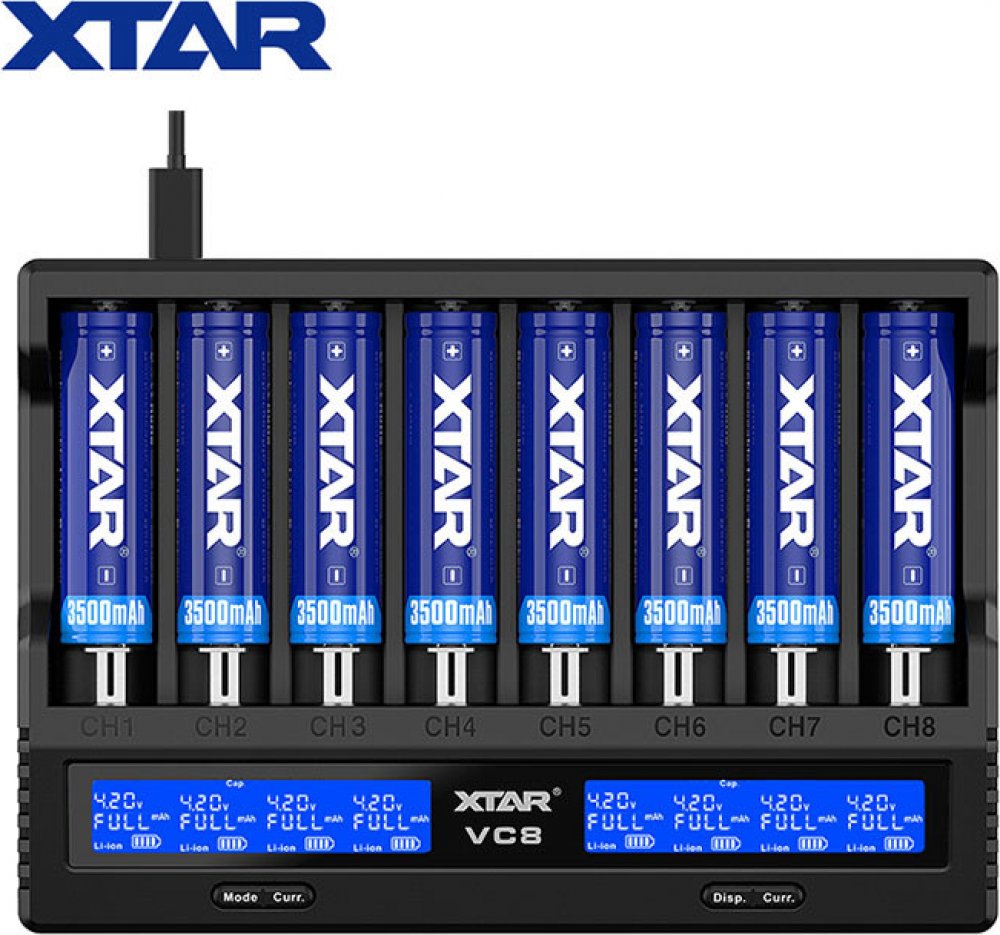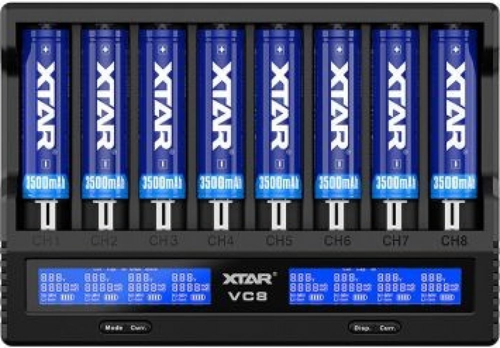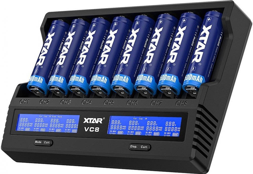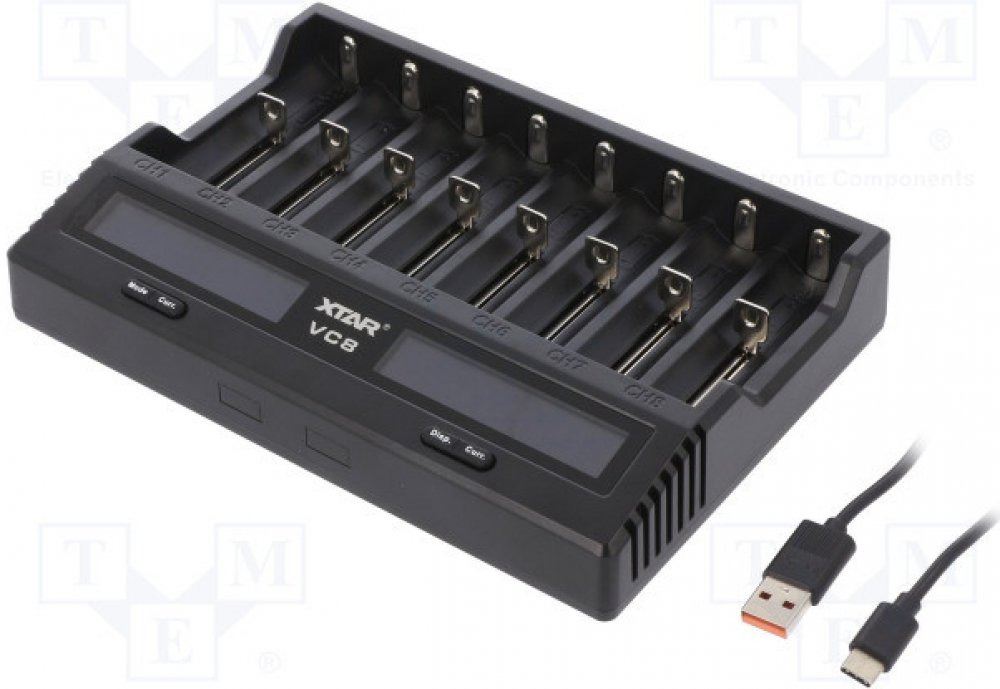 Obsah balení: nabíječka Xtar VC8 a USB kabel, balení neobsahuje baterie (na fotce pro ilustraci), balení neobsahuje síťový adaptér k nabíjení ze zásuvky,