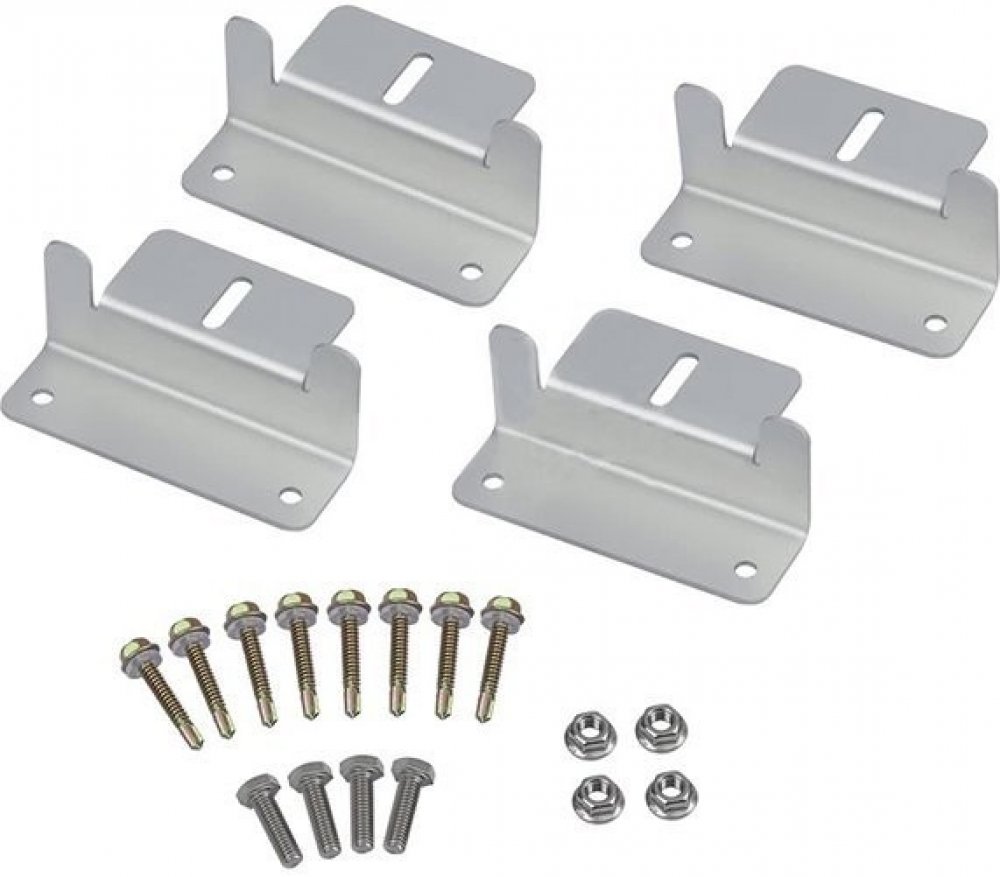 Sada hliníkových držáků pro uchycení solárních panelů. Je určena především pro obytné automobily a jachty.
