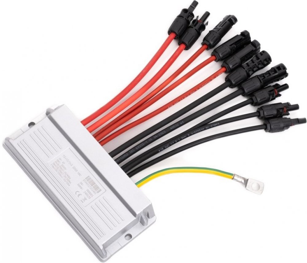 Jednotka je s ohledem na snadnou implementaci do stringu realizována jako průchozí - oba póly stringu se připojí do jednotky a oba z nich také vystupují. Spojení je realizováno klasickými MC4 konektory (na vstupu s integrovanou pojistkou) a vodiči s o průřezy 6 mm2 (v některých verzích i 10 mm2) s dvojitou izolací a barevným rozlišením.