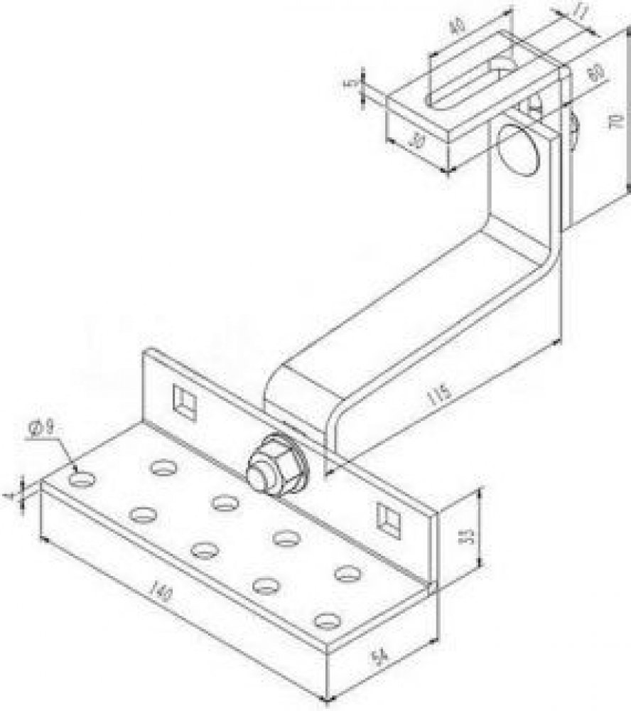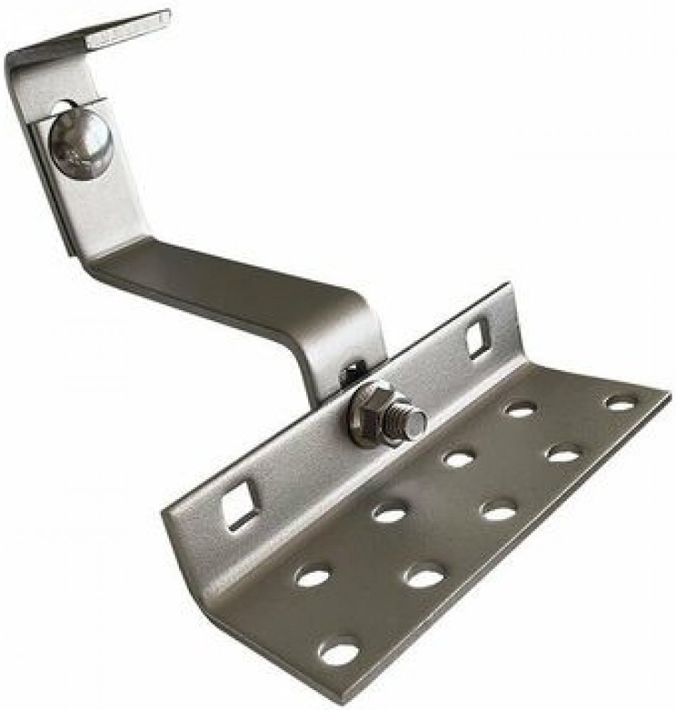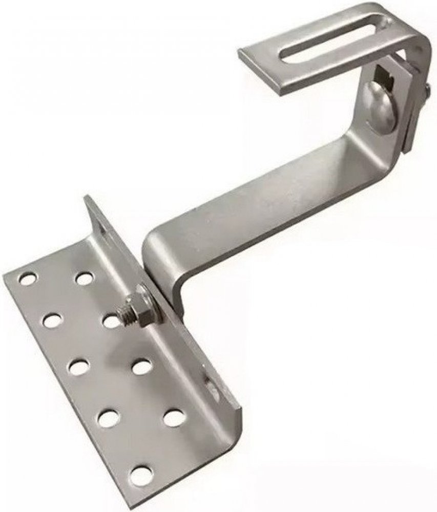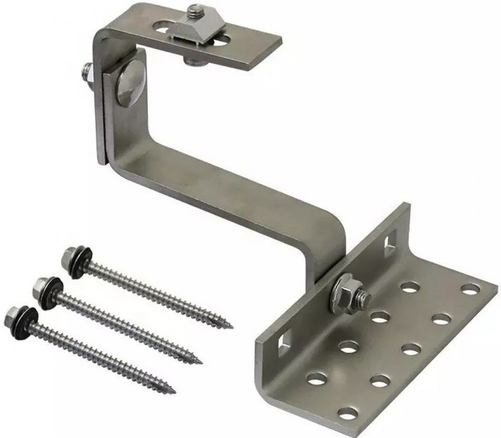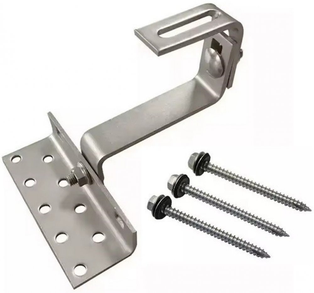 Nastavitelný střešní hák pro připevnění solárních panelů na šikmé střechy s taškovou krytinou. Jeho nastavitelná konstrukce může montážníkům pomoci při správné instalaci a není třeba měnit háky, pokud jsou některé vzdálenosti špatně změřené. To může ušetřit čas a náklady.