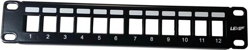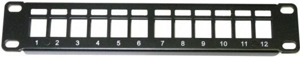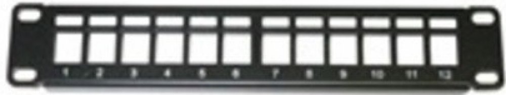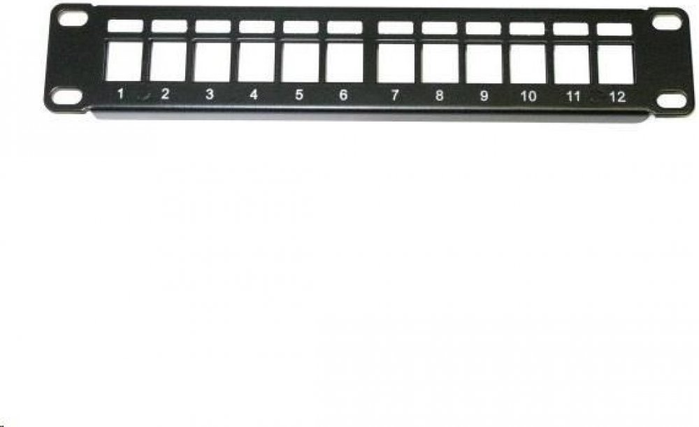 Patch panel pro 10 rozvaděče, výška 1U, 12 portů, neosazený. Lze instalovat řadu běžný keystonů a redukčních rámečků.