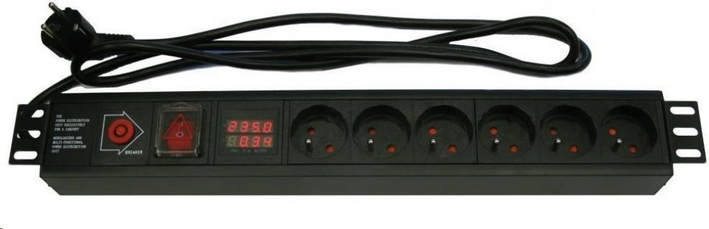 19'' rozvodný panel XtendLan 6x 230V, ČSN, vypínač, nadproudová ochrana, měření spotřeby, kabel 1,8m, 1,5U