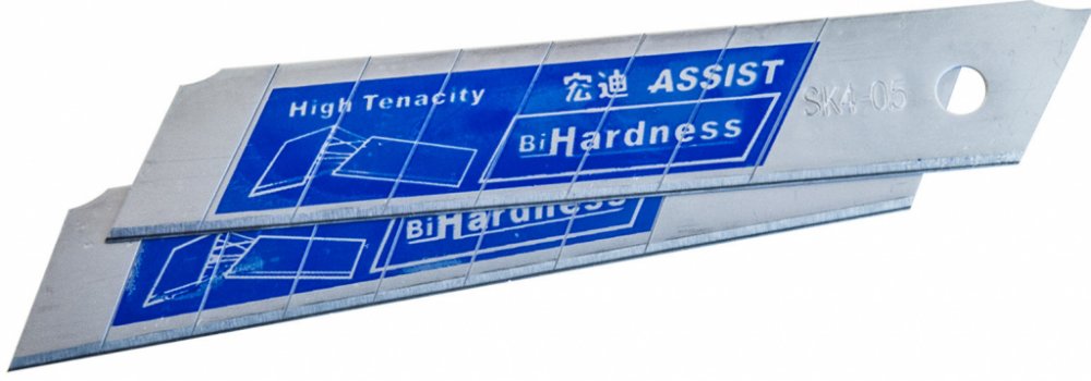 Náhradní čepele 18 mm jsou vyrobeny z uhlíkové oceli SK4. Tvrdší část ostří poskytuje vyšší odolnost proti opotřebení a delší životnost čepele při řezání nebo lámání materiálů s vysokou tvrdostí. Měkčí část těla čepele zase zvyšuje pružnost a odolnost proti nárazům.