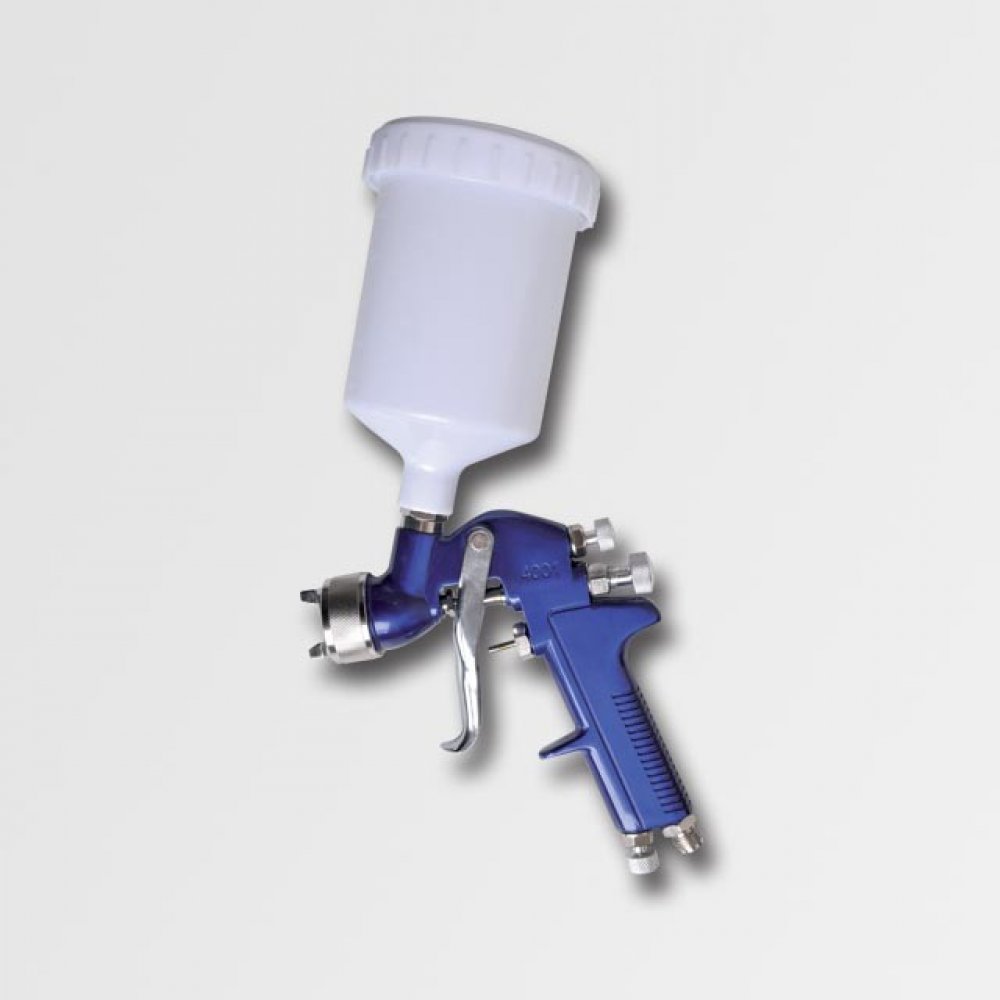 Stříkací pistole HVLP vhodná pro hobby i profi stříkání v dílně nebo lakovně. Objem nádobky je 0,6L. Princip H.V.L.P. = nižší tlak odráží menší množství barvy od povrchu a tím snižuje spotřebu až o 30% při vysokém nánosu.