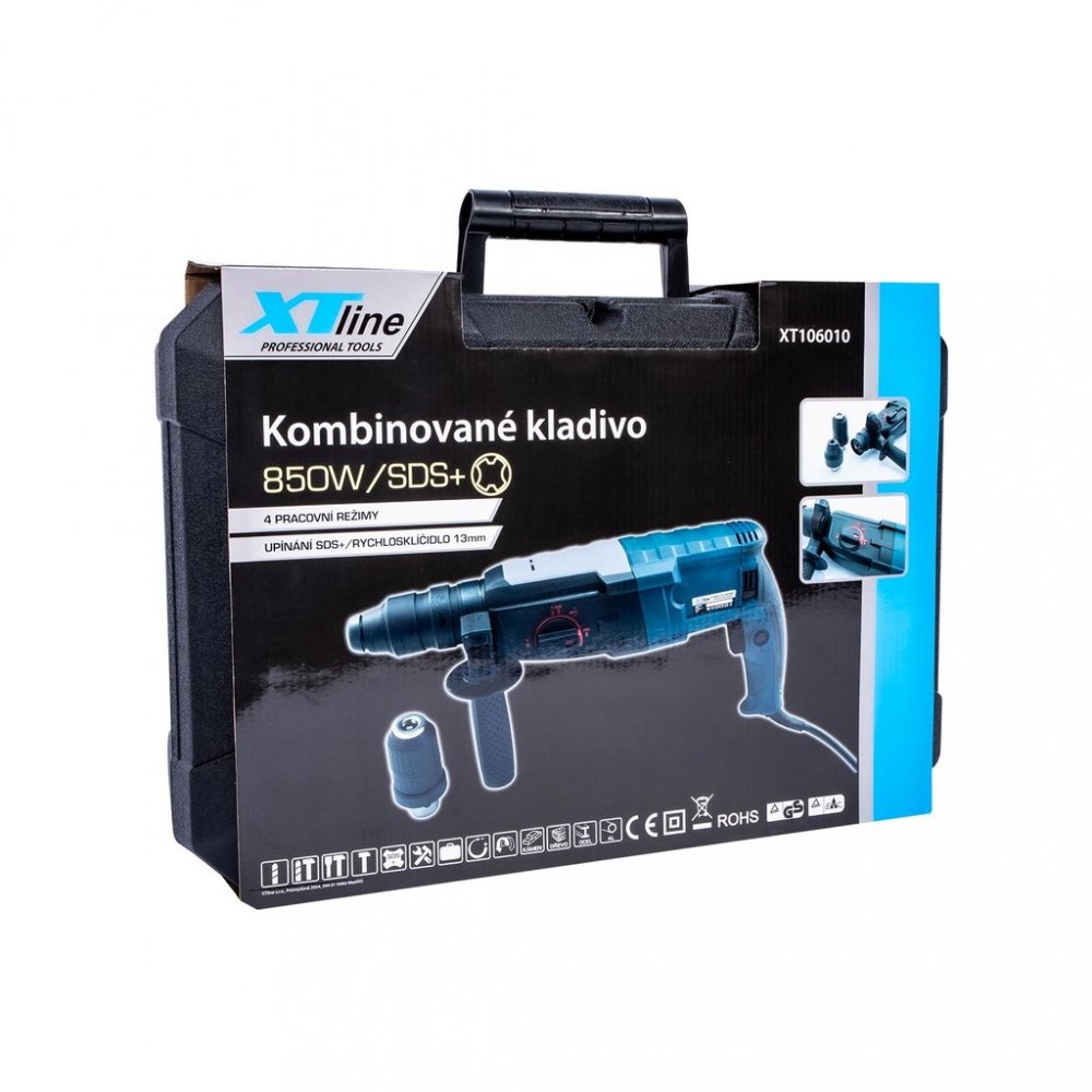 Kombinované elektrické kladivo s výměnnou hlavou SDS-plus a rychloupínacím sklíčidlem 13mm. Čtyři pracovní režimy. XTLINEKombinované kladivo s výměnou hlavou pro upínání vrtáků SDS PLUS a možnost výměny sklíčidla s použitím pro vrtání válcovou stopkou. Je určeno pro stavební materiály jako je beton, kámen, cihly atd.