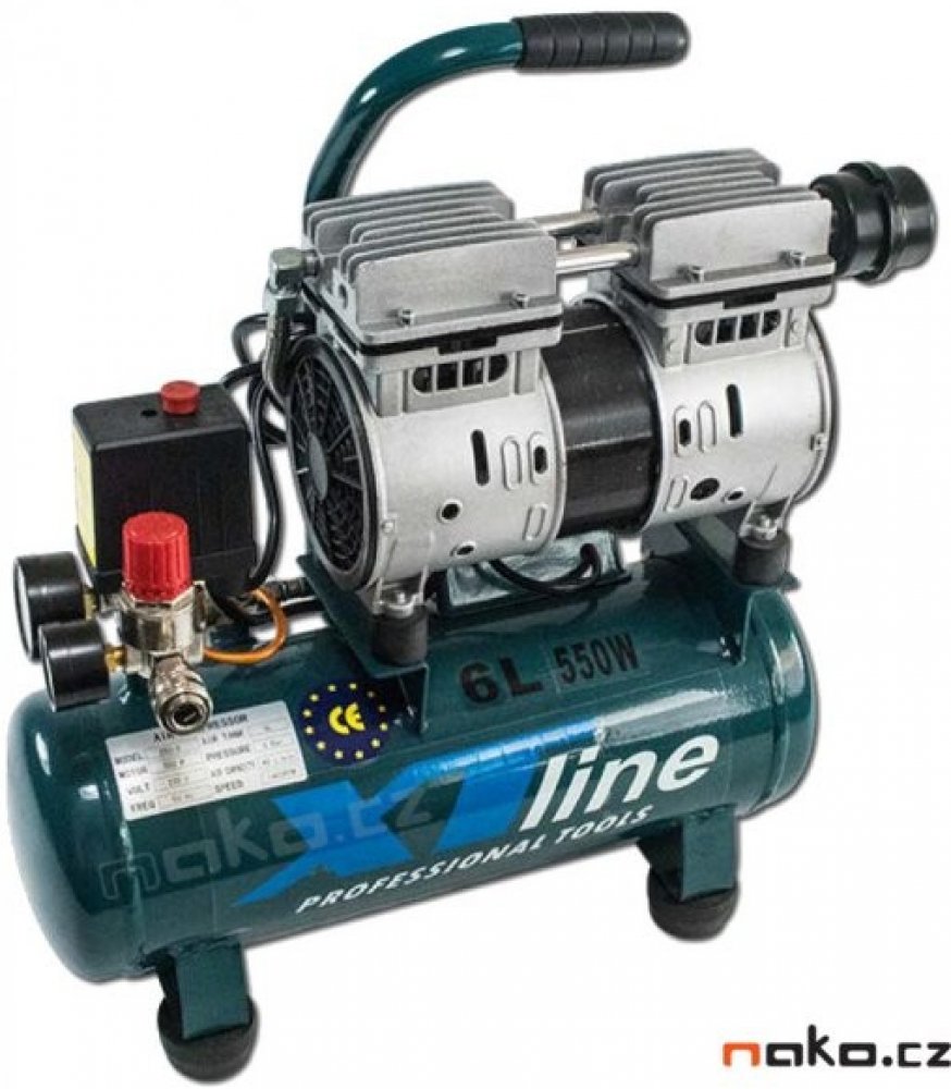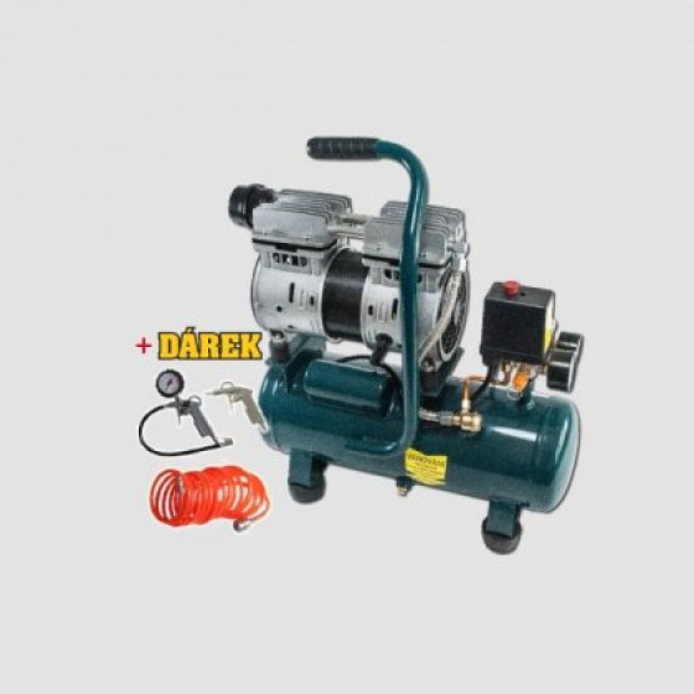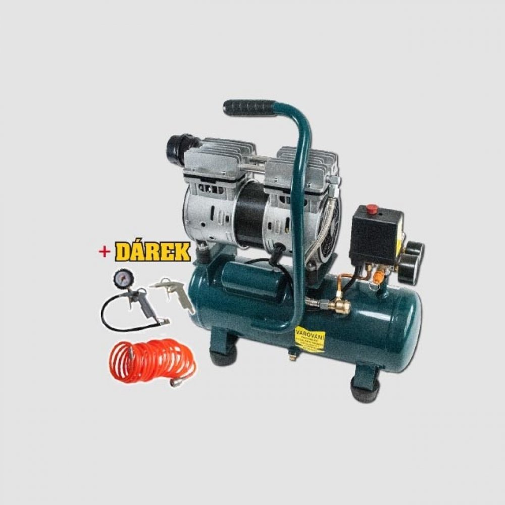 Kompresor bezolejový 550W, 6lKompresor bezolejový je velmi tichý,lehký přenosný.