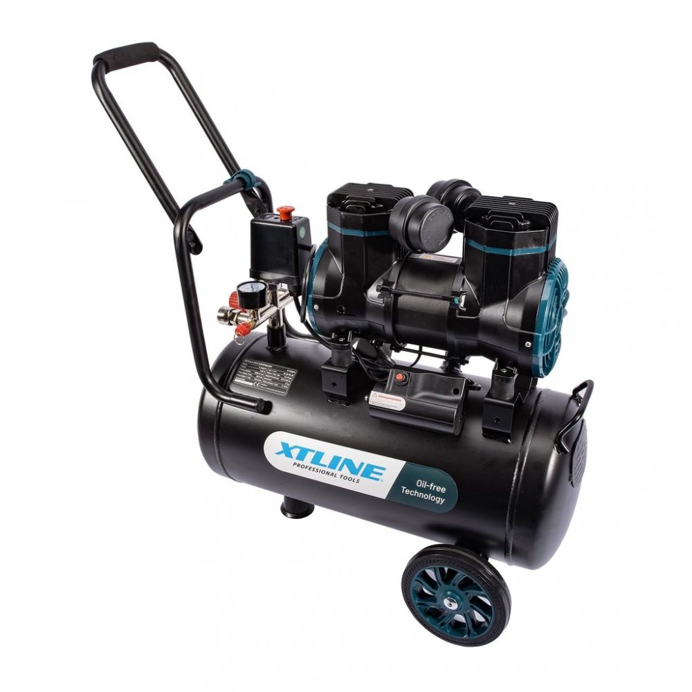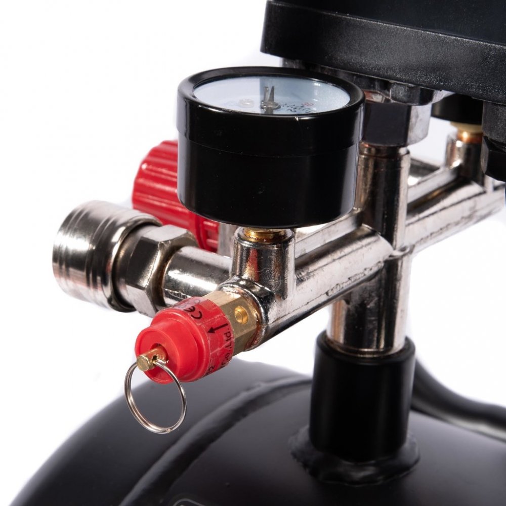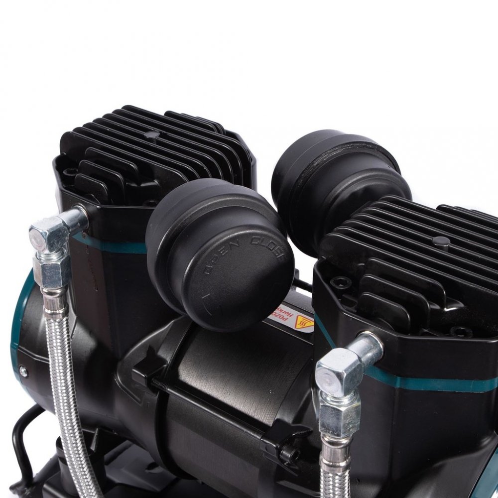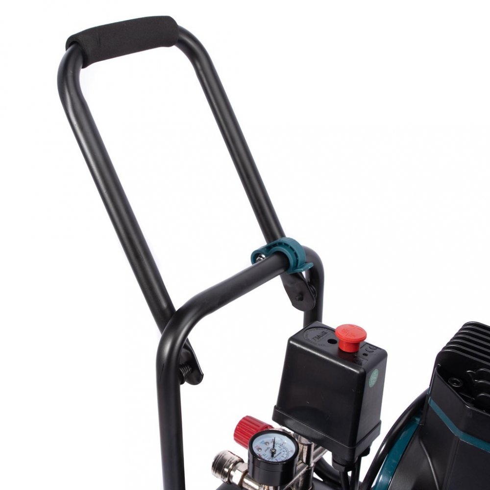 Bezolejový kompresor pro tichou a bezúdržbovou práci se stlačeným vzduchem vhodným pro pohon pneumatického nářadí v dílně nebo okolí domu, huštění pneumatik, nafukovacích potřeb, v potravinářském průmyslu apod. Snadná manipulace díky pojezdovým kolům a rukojeti. Tlumící patka pro zabránění přenosu vibrací.