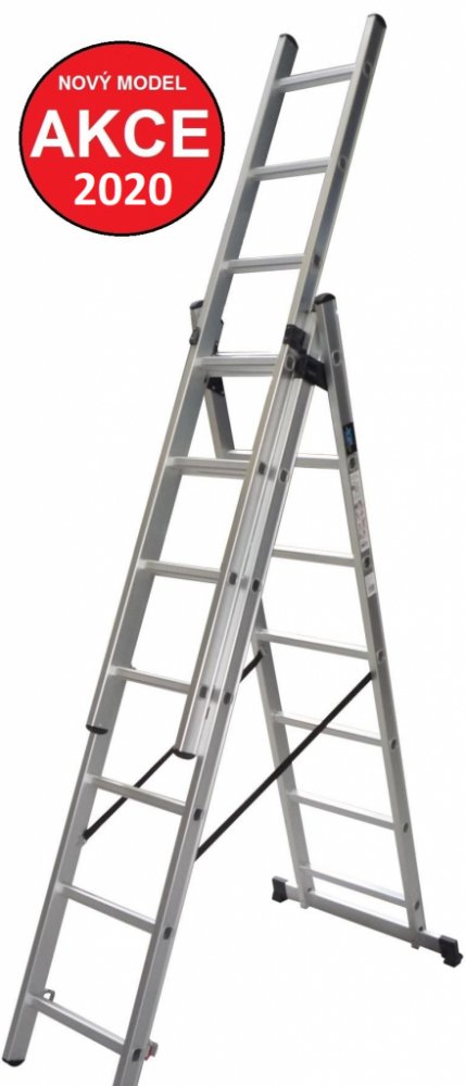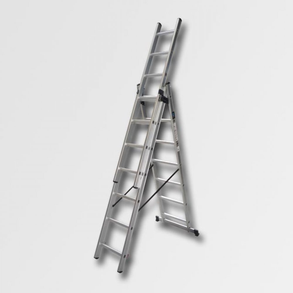 Trojdílný žebřík vyniká svou univerzálností a rychlou a snadnou manipulací. Lze použít jako jednoduchý, dvojitý nebo trojitý výsuvný a samostatně stojící žebřík. V poloze štaflí nabízí zvětšení dosahu pomocí vysunutí pohyblivého dílu. Žebřík lze postavit na schody, meze a výškově rozdílné terény.