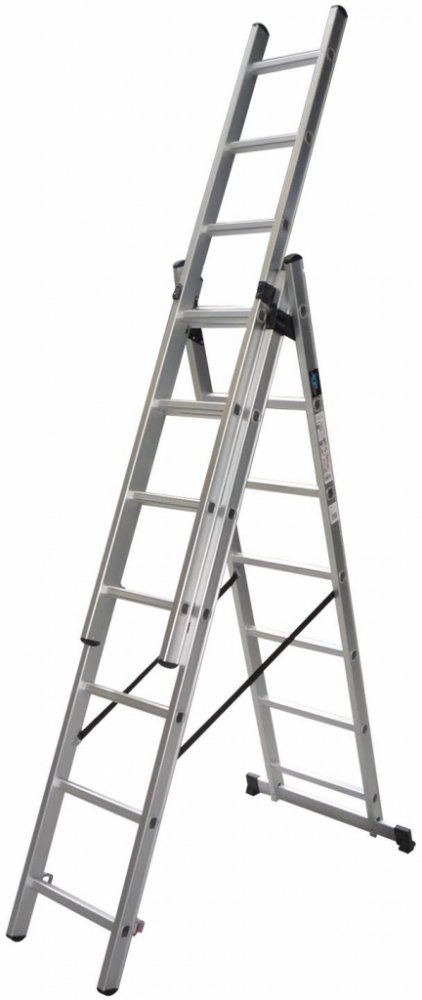 Trojdílný žebřík vyniká svou univerzálností a rychlou a snadnou manipulací. Lze použít jako jednoduchý, dvojitý nebo trojitý výsuvný a samostatně stojící žebřík. V poloze štaflí nabízí zvětšení dosahu pomocí vysunutí pohyblivého dílu.