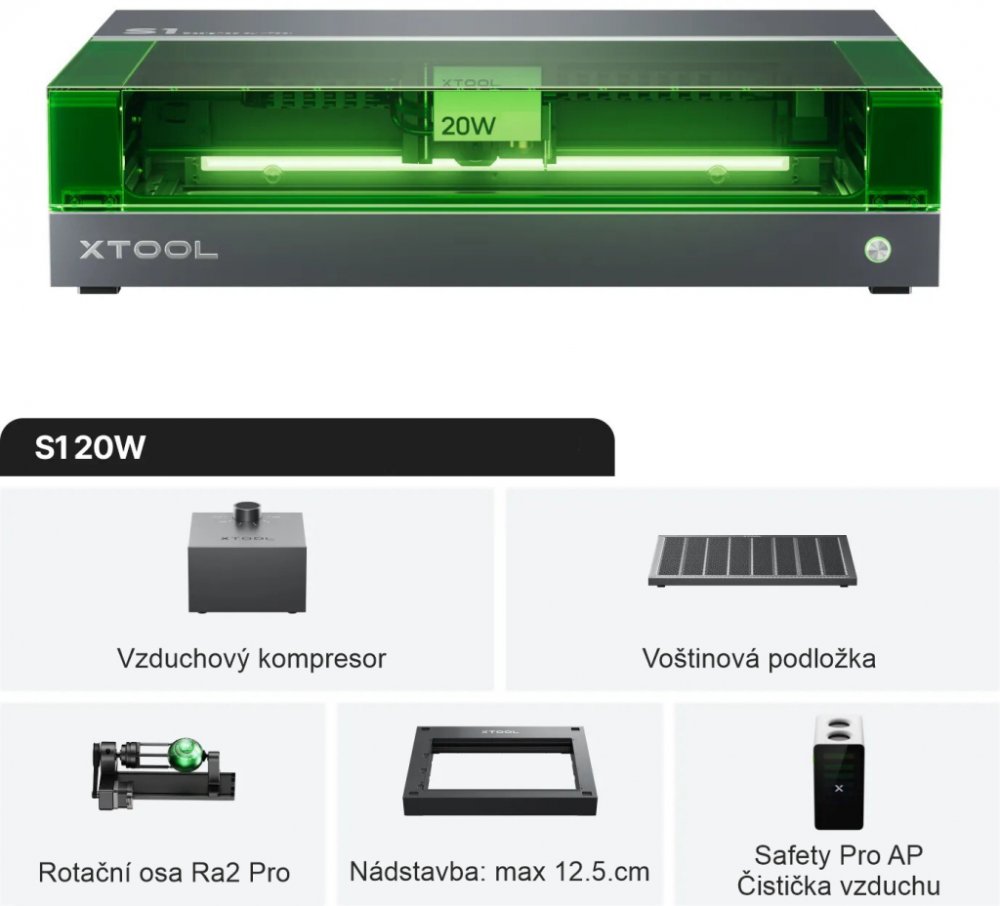 xTool S1 je profesionální laserová řezačka a gravírka s 20W modulem, přesným bodem 0,08 x 0,06 mm a pracovní plochou 498 x 330 mm . Podporuje více než 300 materiálů, nabízí automatické ostření, vícebodové polohování a připojení k Wi-Fi a USB . Je kompatibilní s XCS a LightBurn a zajišťuje maximální efektivitu a bezpečnost práce.