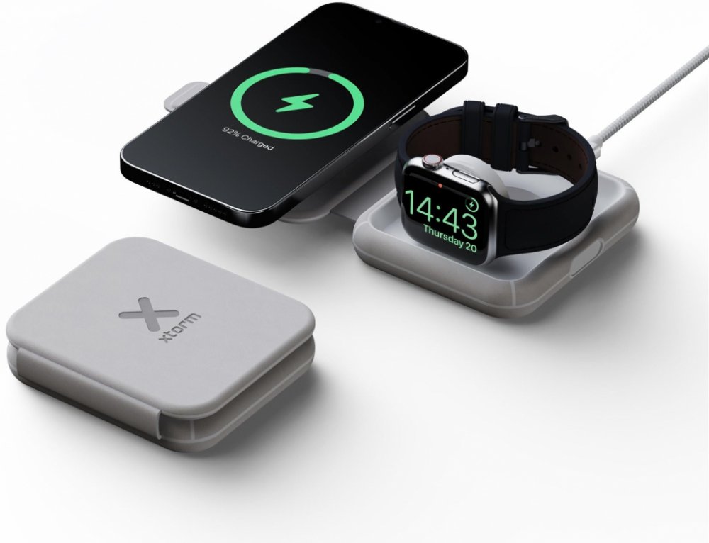 Xtorm navrhl čistou a praktickou skládací bezdrátovou cestovní nabíječku 2v1 pro zařízení podporující magnetické bezdrátové nabíjení. Díky přiloženému USB-C PD kabelu budete moci nabíjet například iPhone a Apple Watch současně na jedné kompaktní nabíjecí podložce.