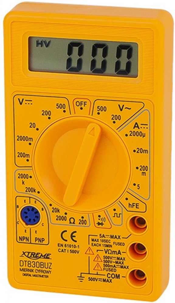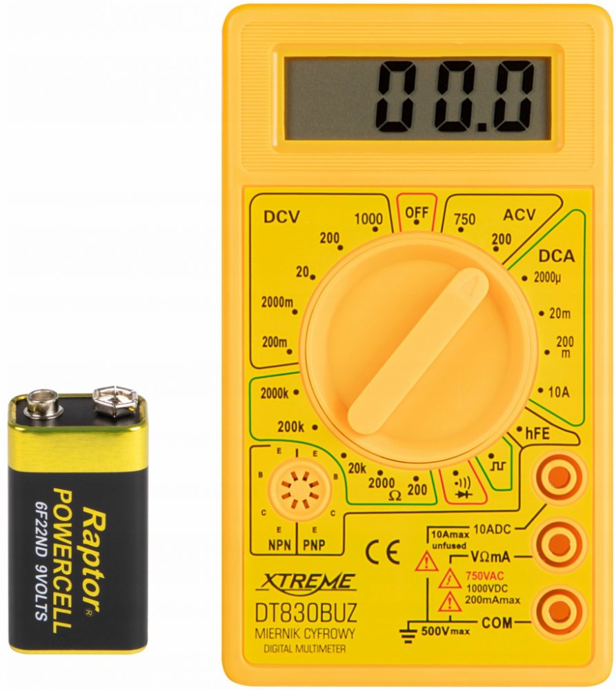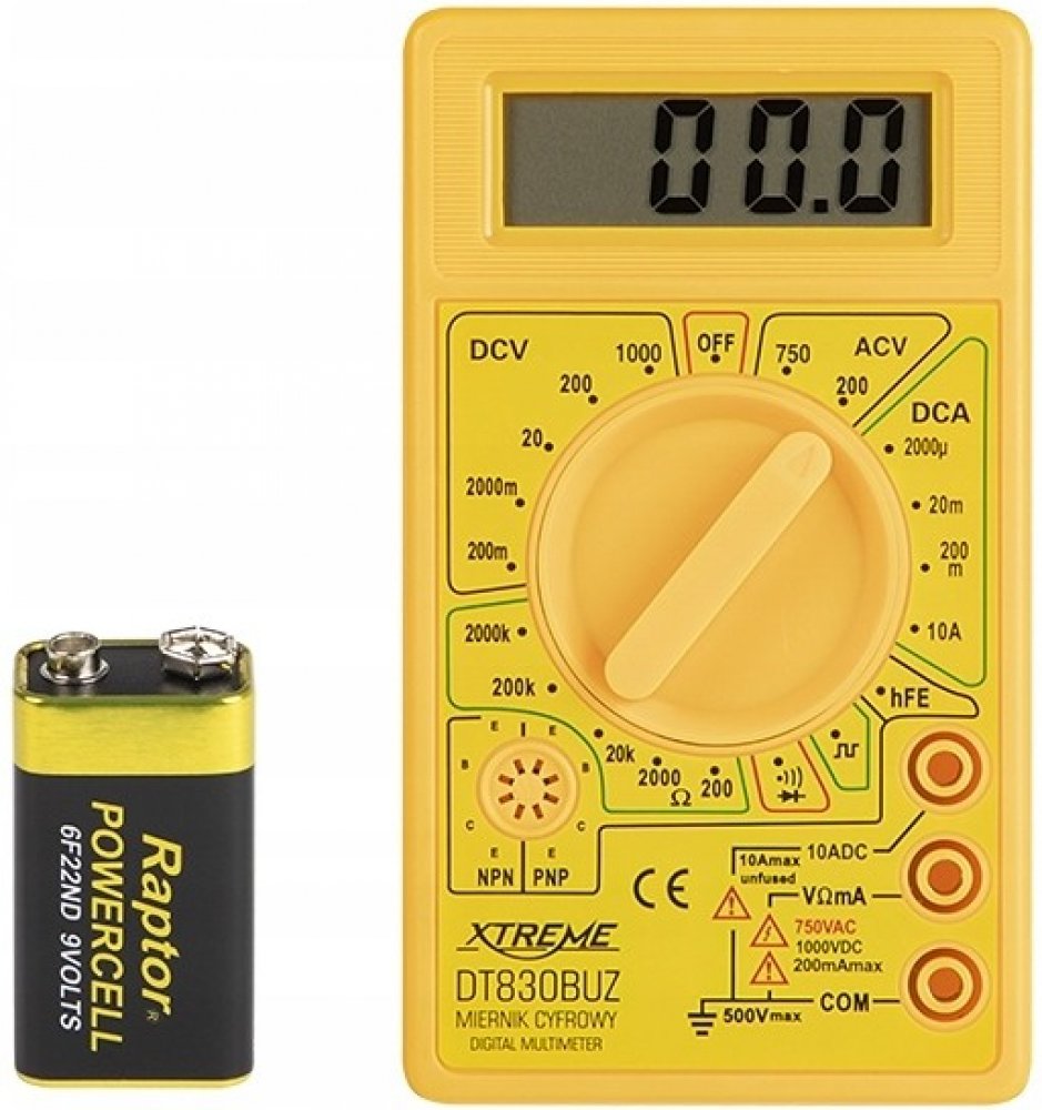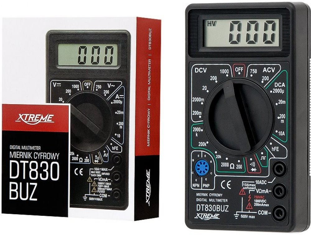 Digitální měřicí přístroj DT830BUZ XTREME je produktem, který zaručuje přesnost a preciznost. Velký a jasný LCD displej zajišťuje správné čtení výsledků. Materiály použité při výrobě měřiče jsou vysoce kvalitní, což se což se promítá do do trvanlivosti výrobku a jeho dlouhého používání.
