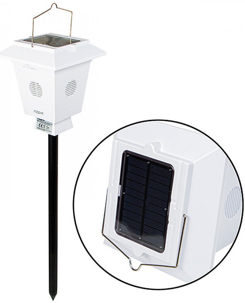 Zařízení odpuzuje ptáky - holuby, špačci, vrány a vrabci - akusticky. Splňuje standard vodotěsnosti IP44 a je vybaveno solárním panelem a vestavěnou baterií 3,7 V 2200 mAh. Je ideální pro venkovní použití v sadech, zahradách a polích. Vydává ultrazvukové signály s různými frekvencemi, čímž účinně odpuzuje. Nabízí tři provozní režimy a poskytuje uspokojivý dosah až 100 m2.