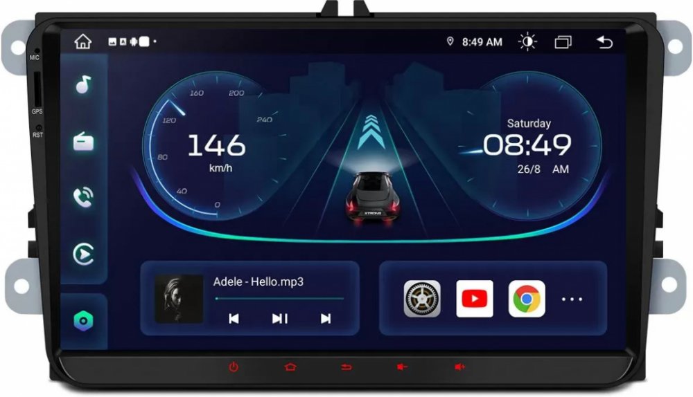 Autorádio pro vozy VW, Škoda, Seat - 9" HD dotykový displej IPS Screen, Android 13, osmijádrový proc