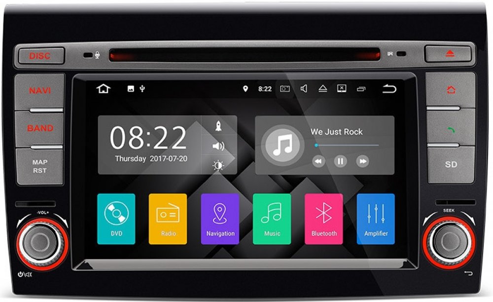 Vestavná, přesně pasující navigace pro FIAT BRAVO (198) (2007-2014), originální zapojení - konektor, originální úchyty, není třeba nic dokupovat.