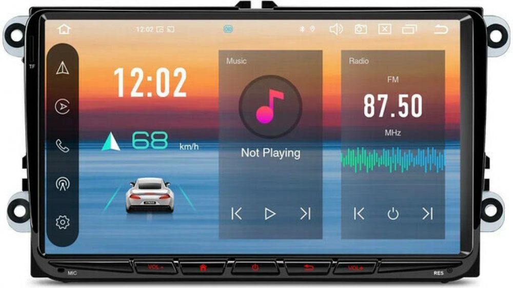 Autorádio pro vozy Volkswagen, Škoda, Seat - 9" HD dotykový displej QLED , Android 14, osmijádrový procesor, operační paměť 4GB, vnitřní paměť 64GB, GPS, Wifi, Bluetooth, 4G, USB, SD slot, CarPlay, Android Auto, s vestavěným DAB+.