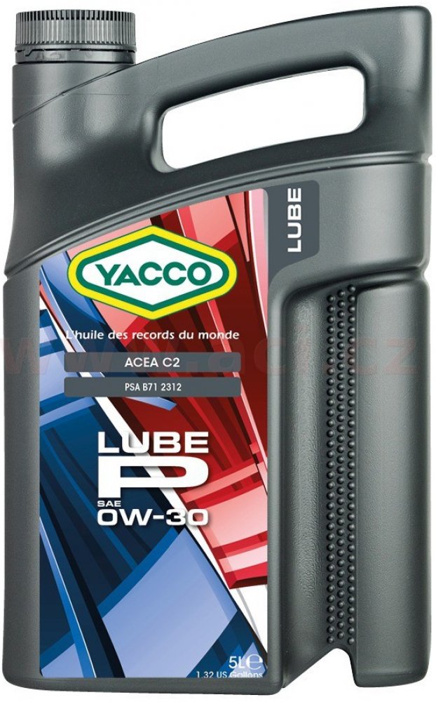 Plně syntetický motorový olej pro moderní osobní a lehké dodávkové automobily.Špičkový plně syntetický olej MID SAPS pro osobní automobily na naftu a benzín a lehké dodávky. Speciálně vyvinutý pro nejnovější vozy skupiny PSA (Peugeot, Citroen), zejména Blue HDI a hybridní motory. Je také vhodný pro vozy vybavené systémem (Start-Stop) - schválení PSA B71 2312.ACEA C2 je také vhodný pro jiné naftové a benzinové motory, které vyžadují ACEA C2 0W30 olej, jako je například:. Alfa Romeo, Fiat, Lancia, Suzuki (S-Cross diesel ...). Za účelem snížení spotřeby paliva a snížení emisí může Lube P 0W30 účinně nahradit olej SAE 5W30 v mnoha motorech (Toyota, Subaru, Honda ...), kde výrobce umožňuje použití SAE 0W30 ACEA C2. Specifická hmotnost při 20°C kg / m3 840Viskozita při 40°C mm 2 / s 55,3Viskozita při 100°C mm 2 / s 10Index viskozity 170Bod tuhnutí: - 48 °CBod vzplanutí: 224 °CViskozita, dynamická při - 35°C mPa.s 5800Vlastnosti a výhody:Tento plně syntetický olej ACEA C2 0w30 je oficiálně schválen PSA.Poskytuje výrazné snížení spotřeby paliva a snižuje emise CO2 a škodlivé emise výfukových plynů.Obsahuje nižší obsah síranového popílku, fosforu a síry - delší životnost filtrů a katalyzátorů DPF.Zvýšená ochrana motoru proti opotřebení, korozi a tvorbě usazenin.Okamžité a optimální mazání od okamžiku spuštění motoru i při velmi nízkých teplotách.Umožňuje bezpečné používání intervalů výměny oleje požadovaných výrobcem automobilu. Schválení: PSA B71 2312 (vydané v roce 2012)Specifikace: ACEA C2