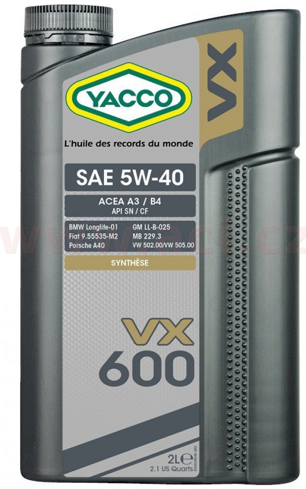 YACCO VX 600 5W-40 je syntetický olej pro benzinové a naftové motory.