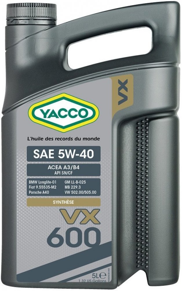 YACCO VX 600 5W40 je vyvinutý pro benzínové motory, stejně jako naftové motory s turbodmychadlem a přímé vstřikování Common Rail (bez DPF). Vhodný pro zátěž ve městské a silniční dopravě.