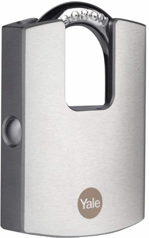 Visací zámky Yale Yale visací zámek pro vysokou úroveň zabezpečení má tělo z mosazi s chromovanou povrchovou úpravou. Dále má chromovaný ocelový třmen se zvýšenou odolností a přídavný plášť, který chrání třmen zámku proti napadení. Zámek nabízí dvojité zamykání s mosaznou západkou pro vyšší bezpečnost. Svými vlastnostmi splňuje stupeň zabezpečení 2 a proto je vhodný pro zabezpečení cennějších předmětů. Zámek má také odolnost vůči povětrnostním vlivům. Součástí balení jsou 3 ks klíčů.
