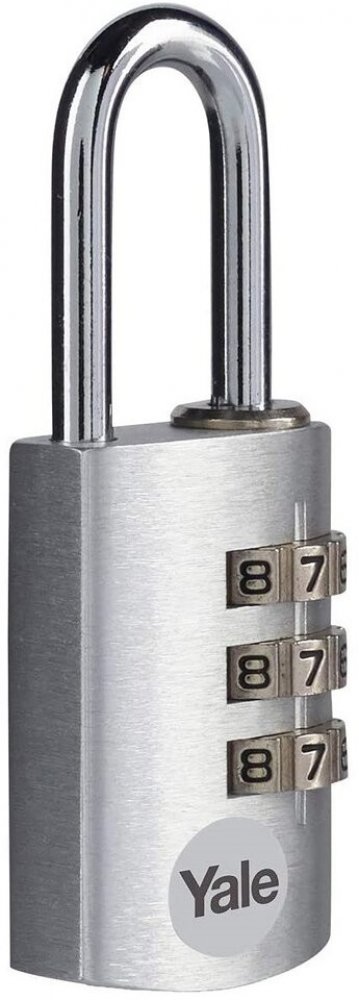 Yale visací zámek YE3CB ve stříbrné barvě je určen pro zabezpečení zavazadel pomocí uzamčení zipů. Má hliníkové tělo a chromovaný ocelový třmen. Zámek má také odolnost vůči povětrnostním vlivům, kdy byl testován vůči korozi po dobu 48 hodin. Třmen zámku lze otáček o 360°. Dále zámek má tříčíselný kód (až 1.000 kombinací), který lze měnit. Rozměry: - Průměr třmenu: 3 mm - Vnitřní výška třmenu: 21 mm - Vnitřní šířka třmenu: 9 mm - Výška těla: 33 mm - Šířka těla: 21 mm