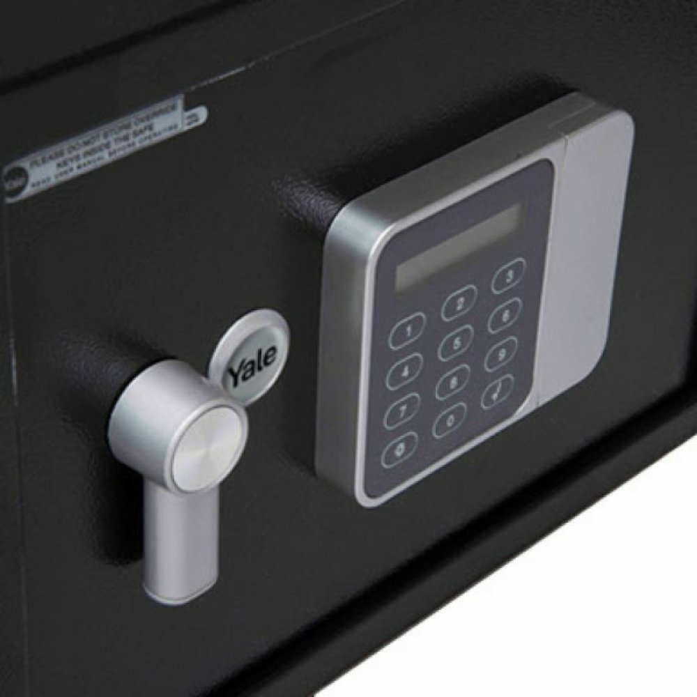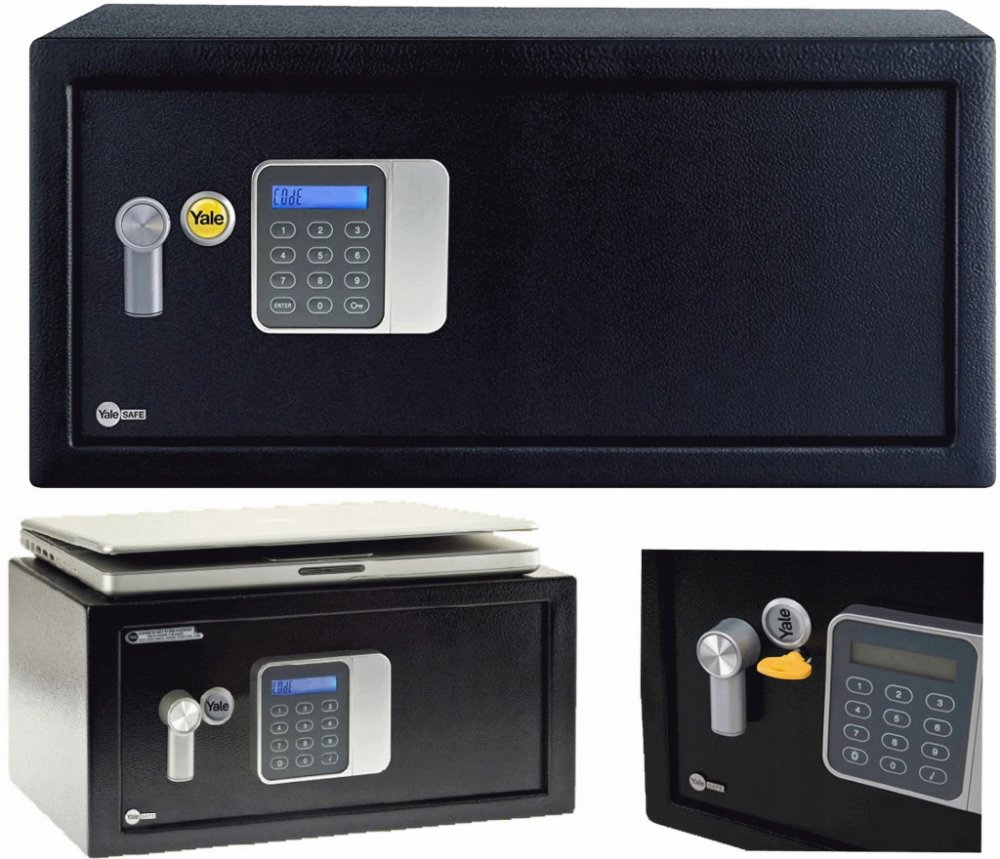 Sejfy Yale Guest jsou ideálním doplňkem domků nebo pokojů pro hosty. LCD displej umožňuje použití 4–8místného číselného hlavního kódu nebo můžete vytvořit kód pro hosty. Praktickou externí baterii v případě potřeby snadno vyměníte. Vybrat si můžete dle svých potřeb malý sejf pro hosty, střední sejf pro hosty nebo sejf dostatečně velký pro uložení notebooku.