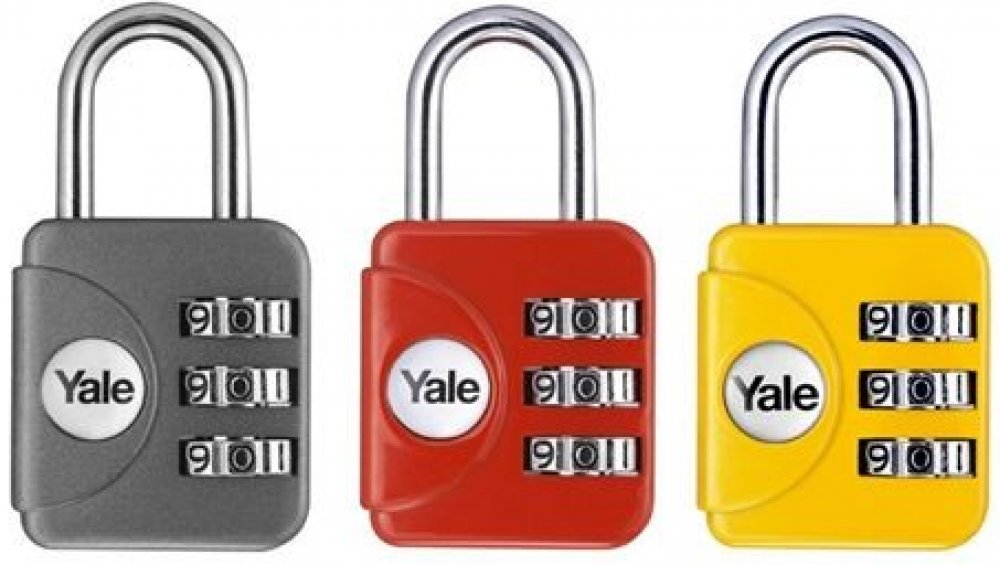 Cestovní visací zámek Yale YP1/28/121/1 - určen pro zabezpečení zavazadel pomocí uzamčení zipů, ale i k běžnému uzamčení skříněk a schránek. Unikátní vzhled a barva zámku učiní zavazadlo snadno rozpoznatelné na zavazadlových pásech. Robustní a pevné kovové pouzdro. Číselný kód je možný kdykoliv změnit.