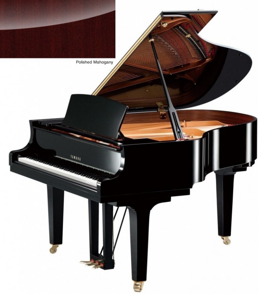 klavír, grand piano, vynikající dynamika, plný, bohatý zvuk se silnou zvučnosti, dlouhý sustain a krásná ozvěna, vylepšená ozvučovací deska, zpevněný zadní rám kladívková mechanika podle vzoru té, kterou lze nalézt v klavíru sérii CFX, 88 kláves, rozměry: 149x101x186cm , hmotnost: 320kg, barva: Polished Mahogany.