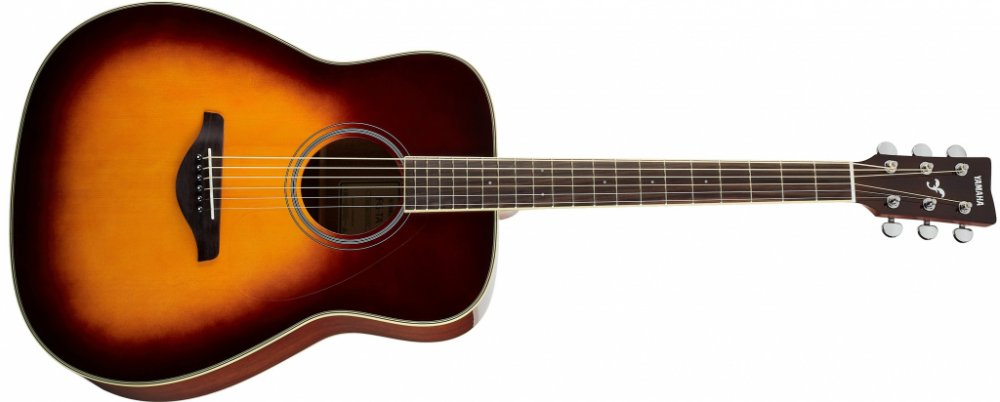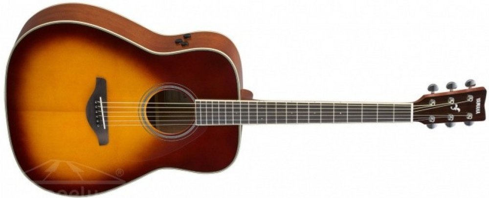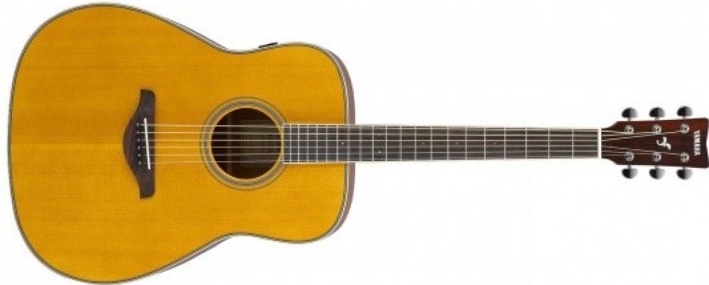 Electro-Acoustic Guitar Playing guitar in a great sounding room is the most inspiring, engaging playing experience imaginable – far more enjoyable than in a dry-sounding room like a lounge, office or den. Yamaha’s TransAcoustic Guitar recreates the incredible experience of playing in a rich, live room without needing any external amplification or effects – just the guitar itself. Whether you’re practicing, writing, recording or just playing for fun, the TransAcoustic Guitar will make you play better, longer and with more creativity. Once you’ve experienced it, you’ll never want to play another acoustic guitar again. • Actuator An actuator installed on the inner surface of the guitar back vibrates in response to the vibrations of the strings. The vibrations of the actuator are then conveyed to the body of the guitar, and to the air in and around the guitar body, generating authentic reverb and chorus sounds from inside the body. • Simple Controls Three simple knobs let you adjust the degree of effect applied and the lineout volume level. Additionally, keeping the controls small minimizes the area of the holes in the body material, reducing acoustic sound loss. • Designed to Provide Superb Acoustic Guitar Sound The body is a solid top guitar based on the FG-series. Louder and stronger sound in the low- to mid-ranges, thanks to cutting-edge acoustic analysis technology developed by the Yamaha R&D Division. This analysis led to the development of the new scalloped bracing pattern, a new and ideal acoustic structure that maintains the durability of the top board while bringing out the most sound the Yamaha FG-TA has to offer. • Newly Designed Battery Box Battery box integrated into the end-pin jack. This requires fewer holes in the body, thus reducing acoustic sound loss. Connect the cable from the jack to a PA or amp to use as an acoustic electric guitar.