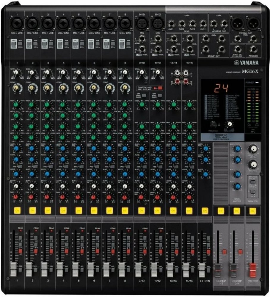 - Max. 10 mikrofonních / 16 linkových vstupů (8 mono + 4 stereo) / 4 GROUP sběrnice + 1 stereo sběrnice / 4 AUX (včetně FX)