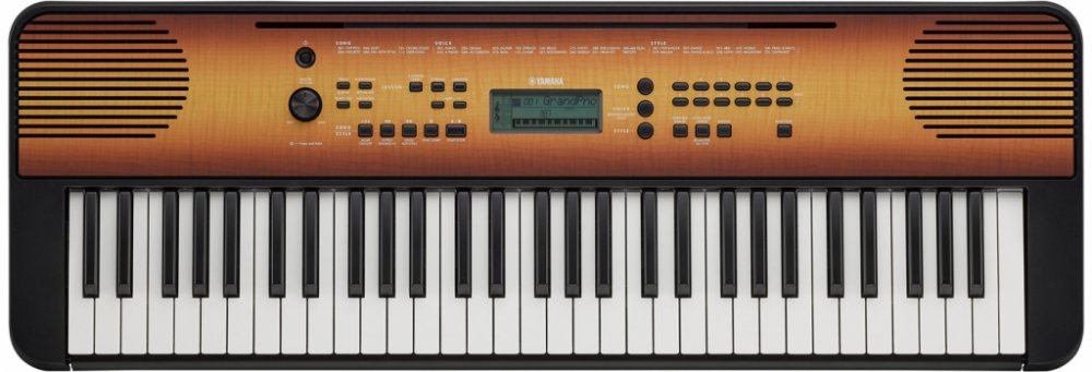 Klávesy s dynamikou úhozu Klávesy E360 jsou vhodné pro studenty, samouky, ale i pro pokročilejší hráče, disponují dynamickou klaviaturou a flexibilní konektivitou, která umožnujě přidat externí audio přehrávač nebo jiné chytré zařízení, jako je např. iPhone, iPad. Klávesy jsou vyrobeny ve dvou poutavých odstínech, skvěle tak zapadnou do vaší moderně vybavené domácnosti nebo hudební třídy. Zvuková banka nabízí 400 inspirativních nástrojů ve vysoké kvalitě, které lze dále upravovat podle aktuální potřeby, 130 automatických doprovodů a 112 skladeb vám umožní hrát prakticky jakýkoliv předvolený styl, který se přizpůsobí vaší akordické hře. Pro úpravu a vylepšení jednotlivých zvuků můžete využít 9 typů efektu Reverb navozující pocit ze hry v koncertním sále a 5 typů efektu Chorus, který dodá zvuku hloubku a rezonanci. PSR E360 je také vybaven 6 typy Ekvalizéru, kterým přizpůsobíte i ty nejjemnější nuance zvuku a snadno tak dosáhnete přesně takového zvuku, jaký se vám líbí. Klávesy také disponují funkcí rozdělení klaviatury SPLIT, či funkcí DUAL, kdy můžete vrstvit dva zvuky na sebe a funkce DUO, kde se klaviatura rozdělí do dvou identických částí a která je tak ideální pro učení a hru dvou hráčů. Rychle a jednoduše se můžete naučit celé písně pomocí výukového systému „Keys to Success“, svůj výkon si poté můžete nahrát do jednostopého rekordéru. Pokud si chcete zahrát s oblíbeným interpretem není nic jednoduššího než připojit váš přehrávač do audio vstupu a doprovázet váš idol jako naživo. Klaviaturu lze virtuálně rozdělit na dvě stejné části. Užijete si tak ještě více zábavy při hře s vašimi kamarády a povedenou skladbu si můžete nahrát přímo do kláves nebo do počítače, popřípadě iOS zařízení. Klávesy jsou snadno přenositelné, a kromě adaptéru můžete využít i napájení na baterie. PSR E360 v sobě ukrávají pár 12cm reproduktorů o výkonu 5W, pokud ovšem patří mezi noční tvory, můžete využít i sluchátkového výstupu, což ocení především vaši sousedé nebo spolubydlící. Součástí balení je adaptér a notový stojan.