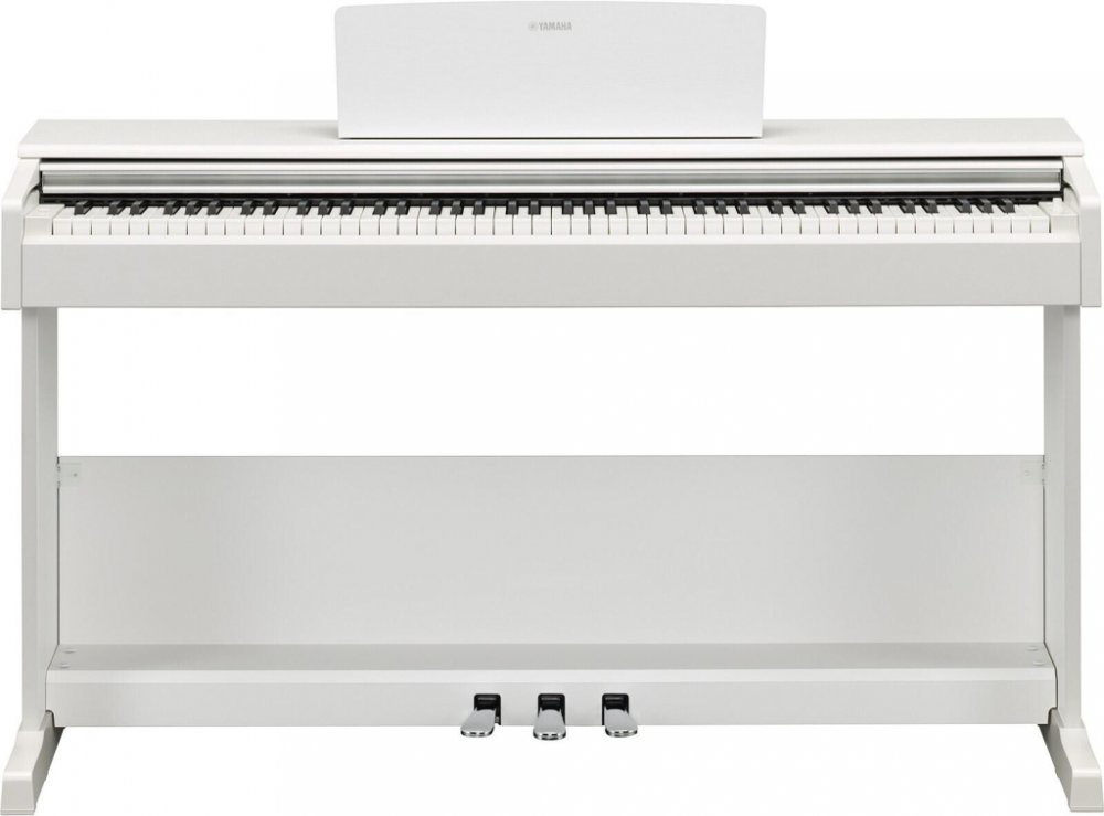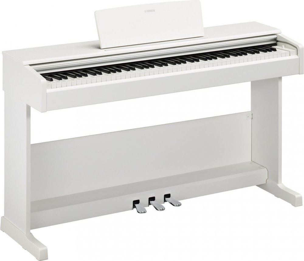 digitální piano Arius, 88 kláves, odstupňovaná GHS hammer mechanika, 64 hlasů polyfonie, 10 zvuků, 4x reverb, half pedal, duální režim hry, 50 klasických skladeb + 303 výukových skladeb, metronom, ozvučení 2x 8W, USB to Host, 2 sluchátkové výstupy, automatické vypínání, rozměry 1357 x 815 x 422 mm, hmotnost 38 kg, barva bílý mat
