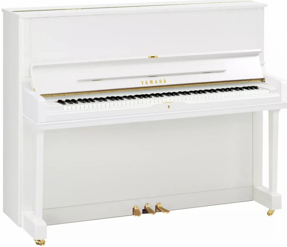 Silent pianino Yamaha YUS1PE, provedení Polished White, výška 121 cm, klasický design