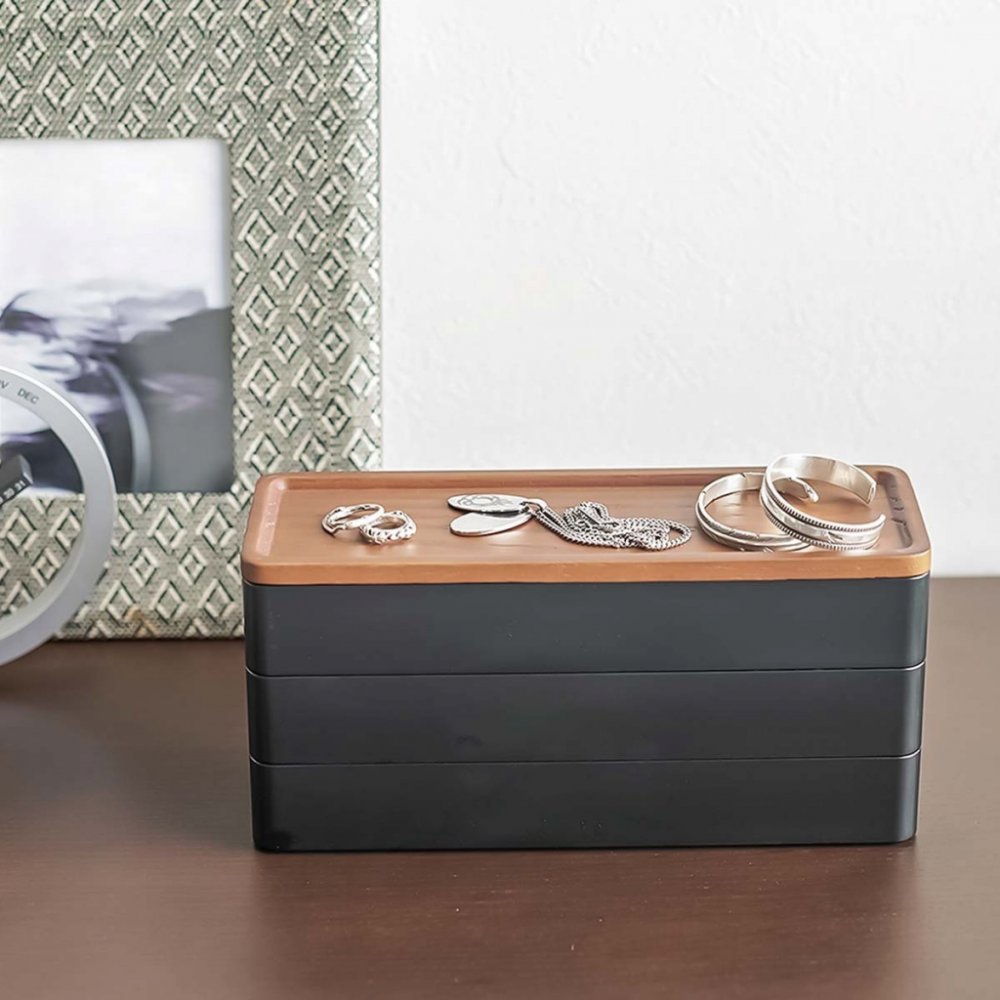 Úložný box YAMAZAKI je praktickým řešením pro uskladnění, organizaci a přepravu široké škály předmětů. Zajišťuje dostatek prostoru například na kosmetiku a kancelářské pomůcky. V případě potřeby jej lze složit a tím ušetřit místo. Víko nabízí bezpečné uzavření a ochranu před nepříznivými vnějšími vlivy. Zásadní vlastnosti produktu Yamazaki 3-patrový úložný box Rin 5810, černý Skladovací úložný box YAMAZAKI poslouží pro efektivní uchovávání a přepravu věcí Poskytne prostor pro kosmetiku a kancelářské pomůcky Můžete ho snadno složit Víko se postará o bezpečné zakrytí a ochranu vašich věcí Plastový úložný box váží 475 g Barva výrobku je černá a hnědá Materiál: plast Rozměry: 11,5 × 24 × 8 cm (vך×h)