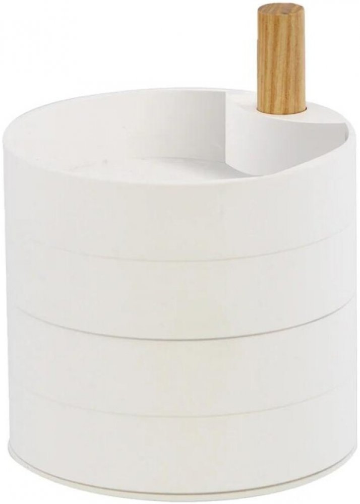 Otočný organizér na šperky Tosca od značky Yamazaki je ideálním řešením pro uspořádání vašich šperků a dalších drobností. Tento elegantní organizér kombinuje odolný ABS plast s jasanovým dřevem a díky svému čistému vzhledu snadno zapadne do minimalistických, moderních, ale i industriálních interiérů. Otočný mechanismus misek umožňuje snadný přístup ke šperkům, což usnadňuje jejich organizaci a zabraňuje zamotání. Čtyřpatrový organizér je možné využít nejen na šperky, ale i na další drobnosti, jako jsou klíče, hodinky nebo kosmetické potřeby.