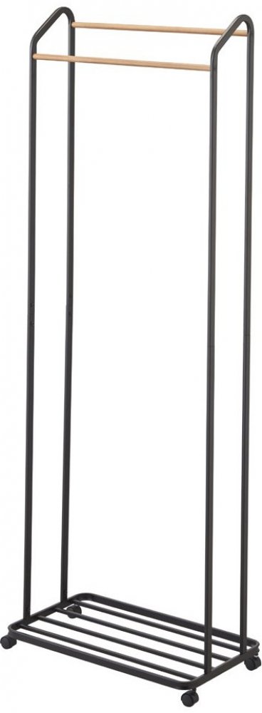 Pojízdný věšák z lakovaného kovu a dřeva.