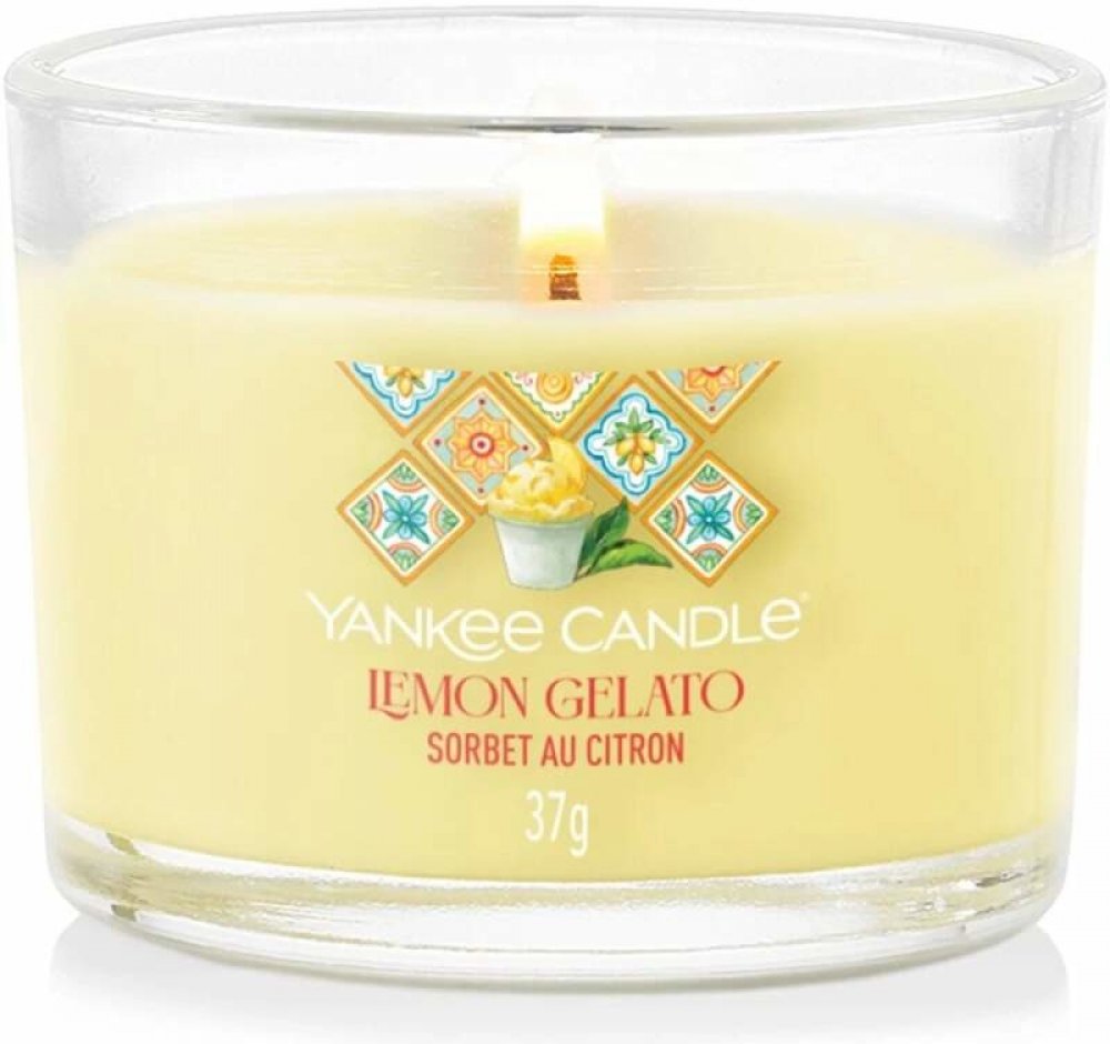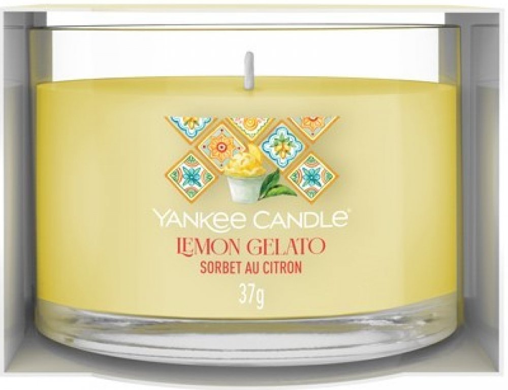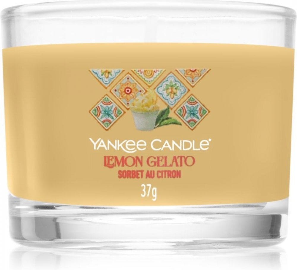 Plněné votivní svíčky ve skle představují moderní způsob, jak si vychutnat svou oblíbenou vůni. Jsou ideální pro vyzkoušení před pořízením větší svíčky a zároveň mohou být krásným a cenově dostupným dárkem. Interiér provoní až na 10 hodin. Vyrobeny jsou z jemné směsi sójového vosku. Po vypálení lze skleničku z kvalitního skla využít jako svícínek na čajovou svíčku. Váha 37 g, rozměr 5,5 × 4 cm. Charakter vůně: Citrusové Hlava: ledový citron, limetka, černý rybíz Srdce: jahoda, marshmallow, ostružin Základ: sladká zmrzlina, vanilka, pižmová dřeva, citrusy v cukru Vůně: Lemon Gelato