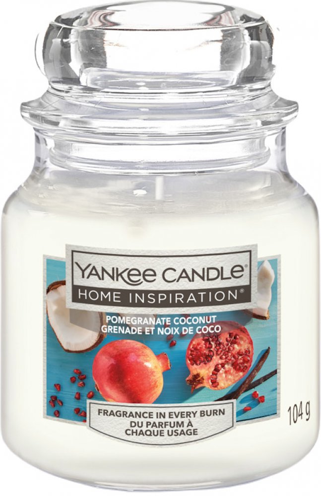 Vůně Yankee Candle Pomegranate Coconut přesvědčí svým výrazným designem v lékárnickém skle s víčkem. Díky vysokému podílu vůně ve vosku tyto svíčky poskytují příjemnou a dlouhotrvající vůni. Ve spojení s vhodnými doplňky Yankee Candle je svíčka ve skle nádhernou dekorací v každém domově a také skvělým a stylovým dárkovým nápadem. Vůně granátového jablka a kokosu.