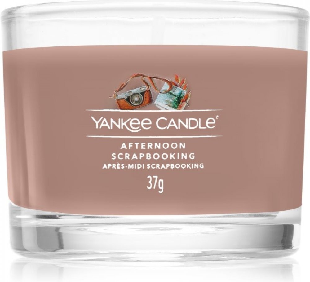 Yankee Candle Votivní svíčka ve skle Yankee Candle – Afternoon scrapbooking, béžová barva, vosk. Přesně pro ty chvilky, kdy se rozhodnete zůstat doma, zapálit svíčky, zachumlat se do deky a pustit se do oblíbené kreativní činnosti, je tu votivní svíčka ve skle od Yankee Candle - Afternoon Scrapbooking.