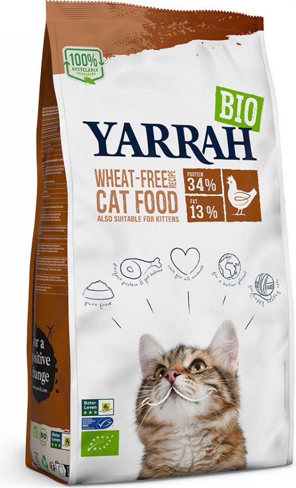 Yarrah krmivo pro kočky je plnohodnotné bio-krmivo. V tomto krmivu jsou použity z velké části bio-suroviny, které pochází z ekologických produkcí. Použití tak kvalitních surovin snižuje riziko vzniku alerigí na krmivo a chrání Vaši kočku před zažívacími potížemi. Krmivo Yarrah je velmi dobře kočkami přijímáno a díky kvalitním surovinám obsaženým v krmivu Vaši kočku nasytí i menší množství krmiva. Vyrobeno v Holandsku. Využijte naší skvělé nabídky! Pouze po omezenou dobu: Nyní při koupi granulí Yarrah Bio pro kočky získáte skvělou slevu! Neopomeňte prosím, že se uvedená nabídka vztahuje pouze na produkt č. 1915746.