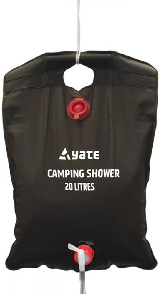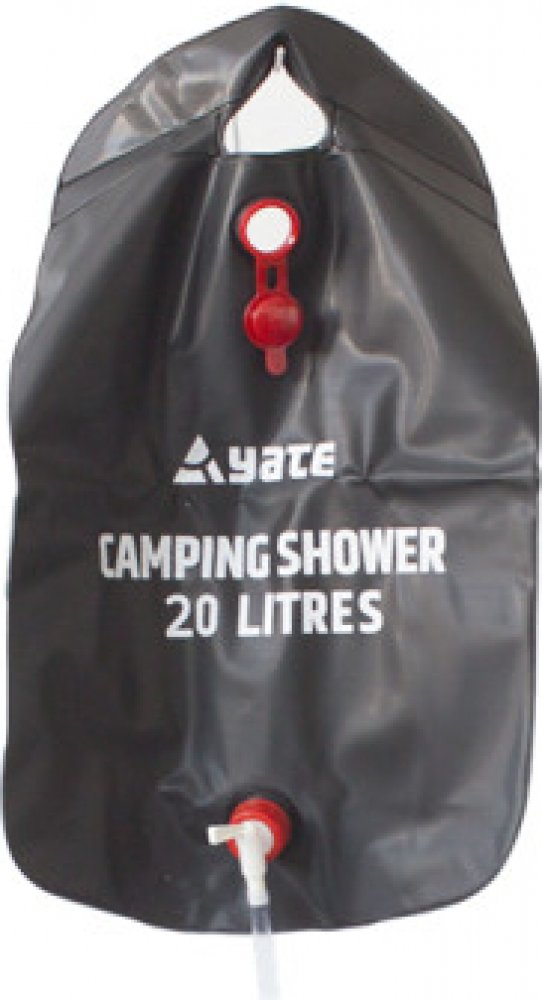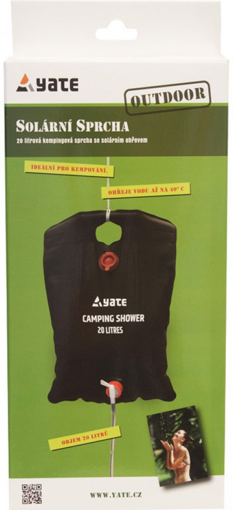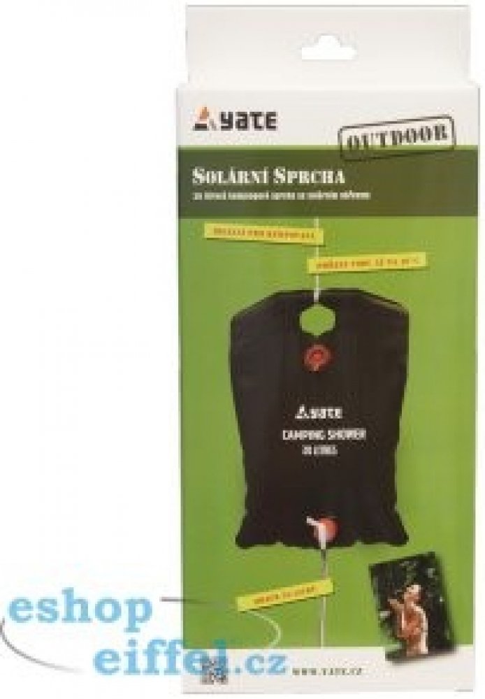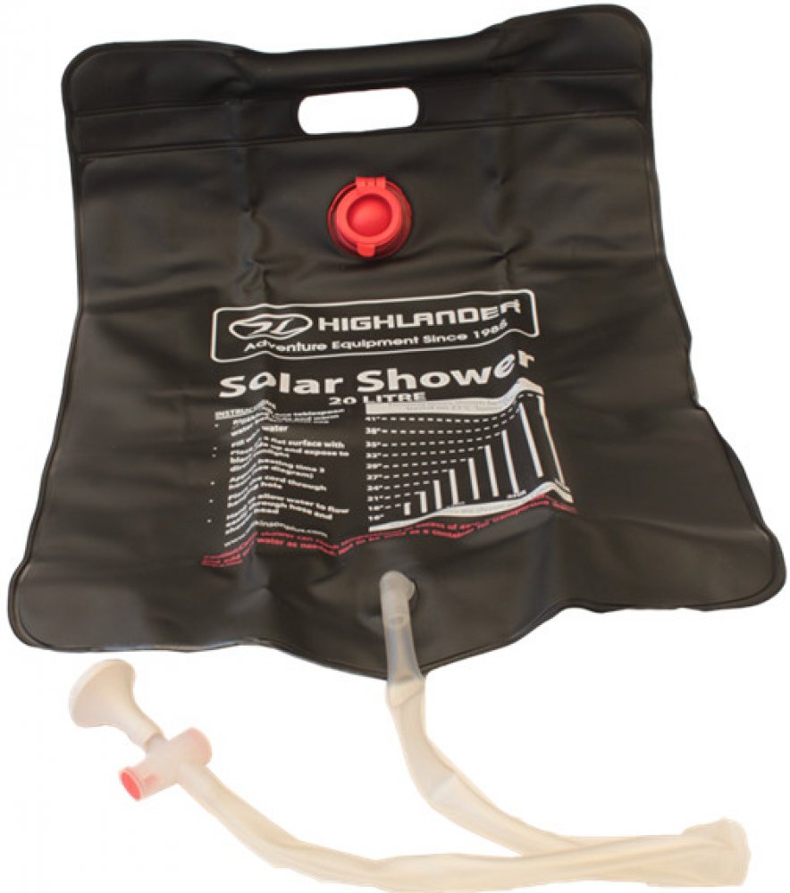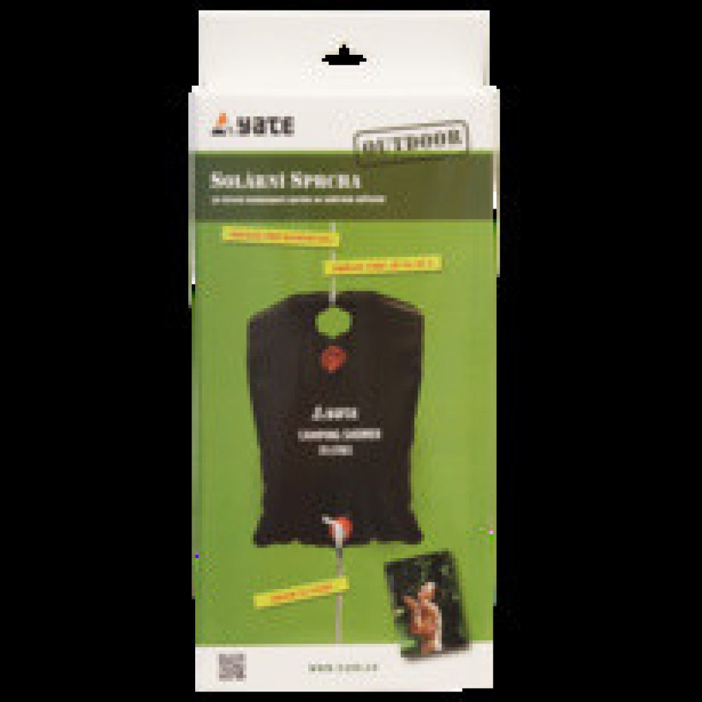 Ideální součást vybavení pro kempování. Tmavý materiál přitahuje sluneční záření a tak dochází k ohřevu vody. Na přímém slunci ohřeje vodu až na cca 40° C. Sprcha má zesílené držadlo, které umožňuje její zvětšení a rozložení váhy. Dodáváno včetně sňůry pro zavěšení háčku.