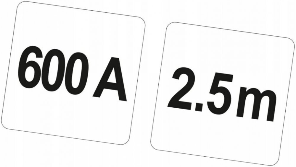Kabely z měděné šňůry, která zaručuje vysokou vodivost a flexibilitu i při nejnižších průřezech. Kabelová izolace z pryže si zachovává vysokou pružnost při nízkých teplotách a dokonale odvádí teplo. Kabely jsou umístěny v pouzdře pro snadnou přepravu a skladování. Parametry:Délka 2,5 m , Nominální zatížení A: 600