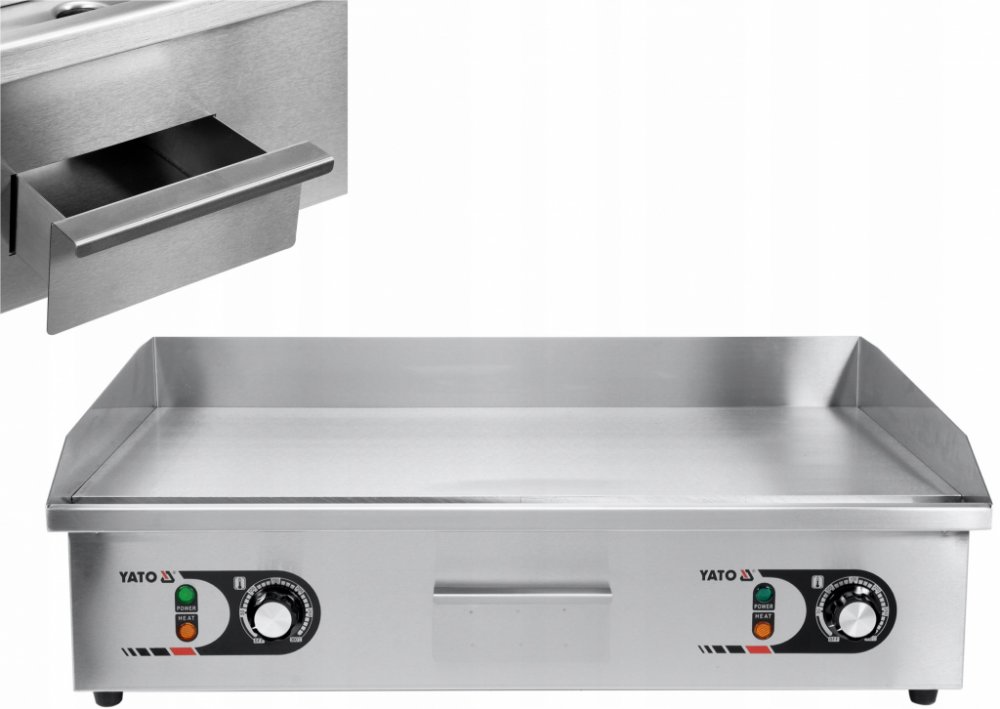 Grilovací deska je řízena dvěmi potenciometry s regulací provozní teploty v rozsahu 50 ~ 300 ° C, které jsou umístěny na předním panelu. Na zadní straně zařízení je však vypínač odolný proti stříkající vodě, který vám umožní vypnout gril, aniž byste odpojili napájecí kabel ze sítě. Vestavěná pojistka brání přehřátí grilu.