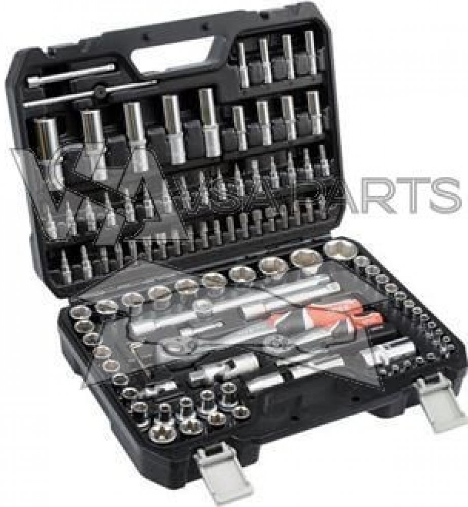Gola sada 1/2" a 1/4" obsahuje 108 ks nástavců, prodlužovacích nástavců, ráčny s plastovou rukojetí a další příslušenství. Vyrobené z kvalitní oceli CrV40, CrV6150, CrV50BV30, CrMo440 a S2 s funkcí AS-DRIVE. Ráčny mají jemný 72 zubý chod. Funkce AS-DRIVE umožňuje vyvinout větší kontaktní sílu, neboť ke kontaktu se šroubem nedochází na hranách šestihranu, nýbrž v první třetině styčných ploch. Tím n...