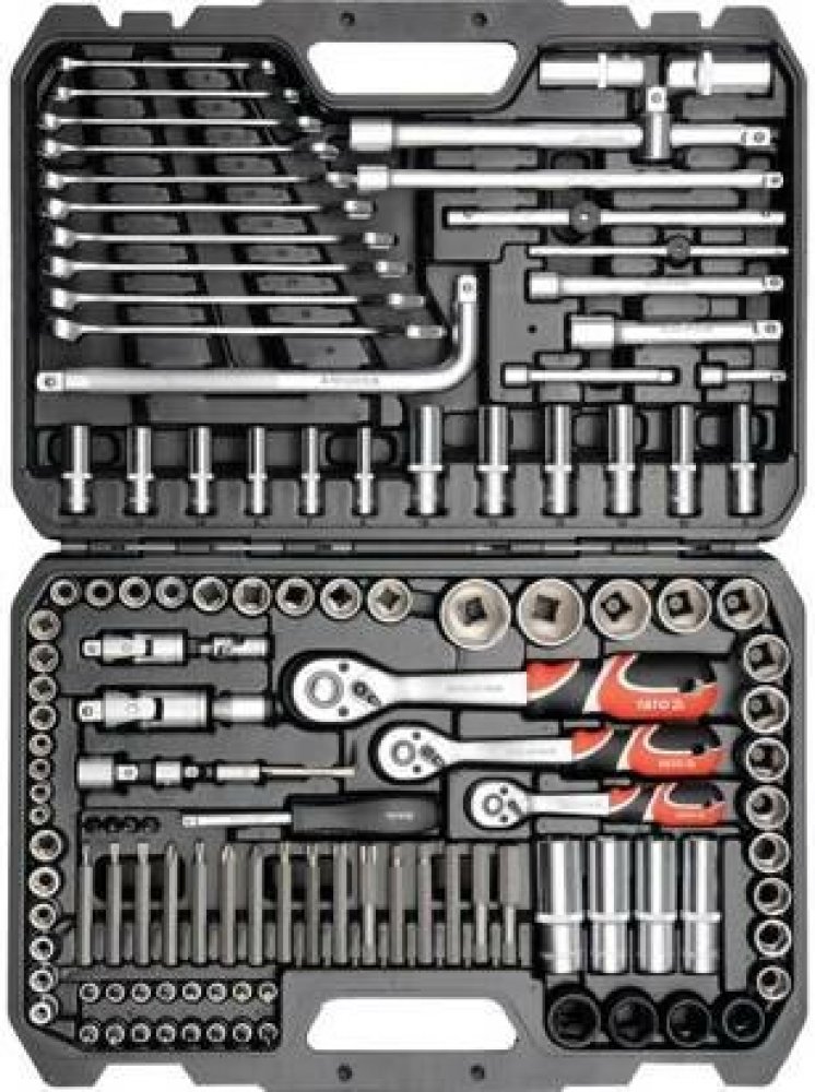 Gola sada 1/2", 3/8", 1/4" + příslušenství 128 ks Yato, YT-38872