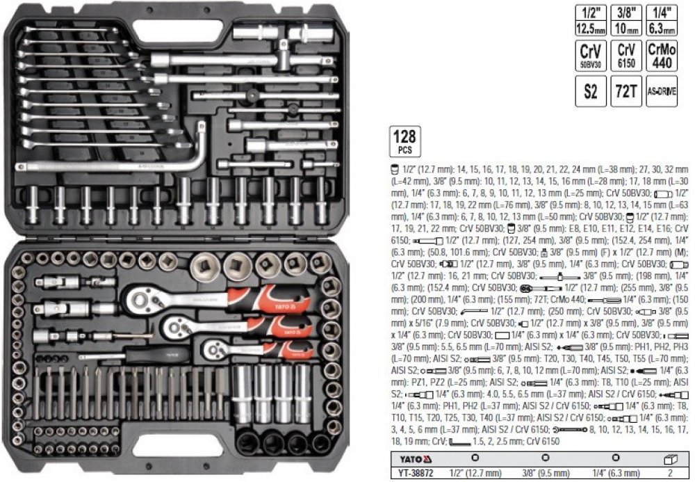 YATO Gola sada 1/2", 3/8" a 1/4", 128 ks YT-38872