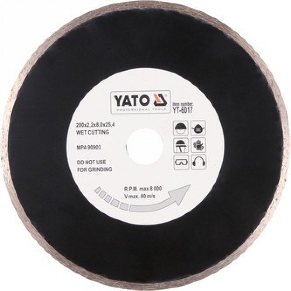 Kotouč diamantový pro mokré řezání s použitím na keramiku, sklo a porcelán. Technická data průměr 200 mm otvor 25,4 mm max. ot./min 8 000 šířka 2,2 mm