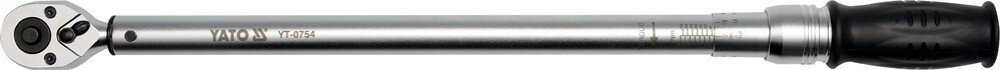Momentový klíč Yato s rozsahem 60 - 340 Nm, je určen zejména pro aplikace, kde je podstatná jeho garantovaná přesnost +/- 3%.Samotné nastavení momentu, se provádí otáčením rukojeti, kdy nastavená hodnota je zřetelně čitelná na stupnici a je zafixována pomocí aretačního kroužku na konci rukojeti.Klíč má celkově jednoduchou a rychlou obsluhu a samotné dosažení nastaveného momentu je signalizováno zřetelným cvaknutím v 32 zubém ráčnovém mechanizmu.Technická datadélka613 mmzakončení1/2"rozsah60 - 340 Nmpřesnost + / - 3 %DIN6789materiálCrV 6140 Momentový klíč Yato s rozsahem 60 - 340 Nm, s garantovanou přesností +/- 4%. Nastavení se provádí otáčením rukojeti. nastavená hodnota je zřetelná na dobře čitelné stupinici. Je zafixována ihned po uvolnění aretačního prstence. Klíč má celkově jednoduchou a rychlou obsluhu. Dosažení nastaveného momentu je signalizováno zřetelným cvaknutím v mechanizmu ráčny .Momentovým klíčem nedoporučujeme povolovat. • přesnost 4% • pravý levý / chod • výstupní čtyřhran 1/2" • délka 613 mm • jasně čitelná stupnice • snadná obsluha a fixace nastavené hodnotyxdélka (mm)613přesnost3%počet zubů t32max. utahovací moment (Nm)60-340 Nm