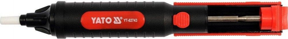 Odsávačka cínu Yato délky 206 mm. • Odsávačka cínu 21,8 x 206 mm Yato • Délka těla odsávačky 206 mm • Průměr těla odsávačky 21,8 mm • Teflonový hrot materiálplastrozměry (mm)21.8 X 206