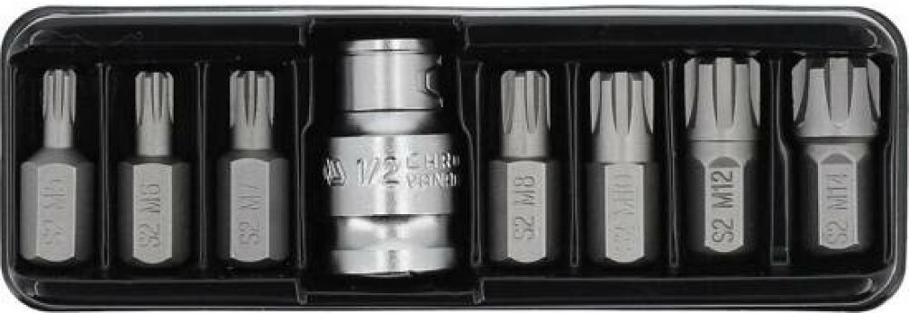 Tato sada je vhodná pro profesionály, především pro mechaniky. Bity jsou spolu s adaptérem uzpůsobeny pro práci s ráčnou 1/2". V sadě se nachází bity Ribe M5, M6, M7, M8, M10 a M12.